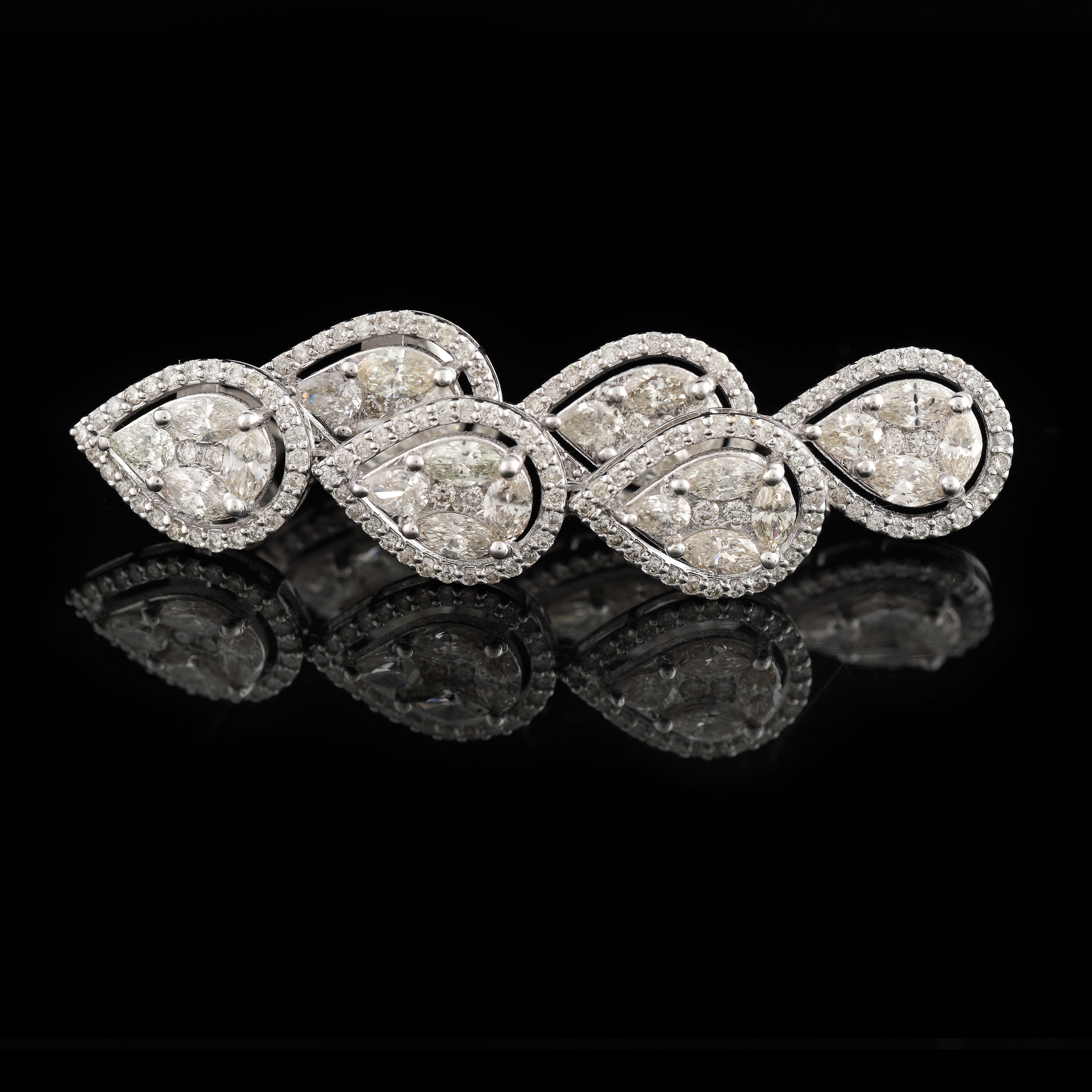 18 marquise faceted diamonds, K-L color, SI-I clarity, approx. 2.70 ct.; 170 round brilliant cut diamonds, I-J color, SI-I clarity, approx. 1.40 ct. and 6 pear faceted diamonds, K-L color, SI-I clarity, approx. 0.84 ct.