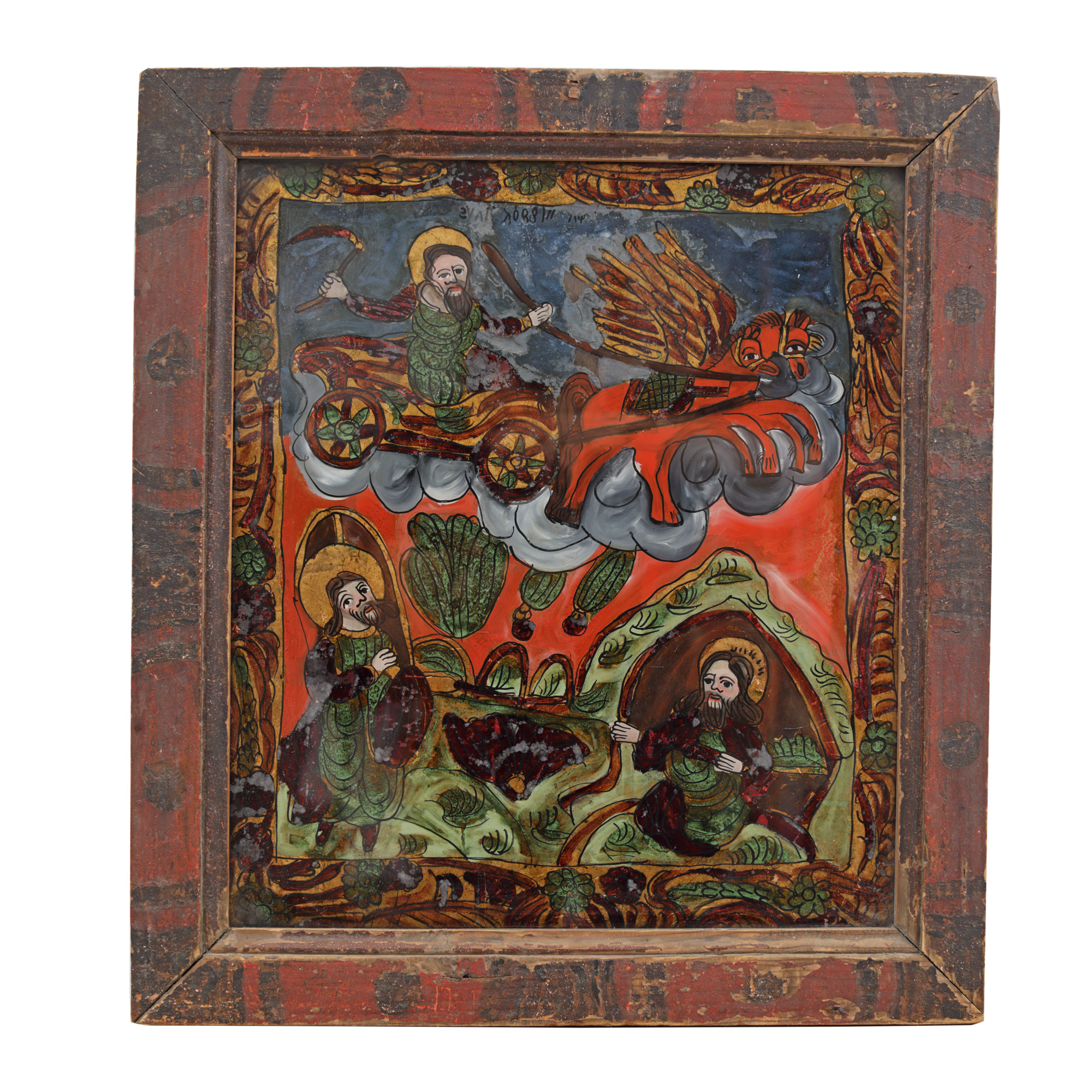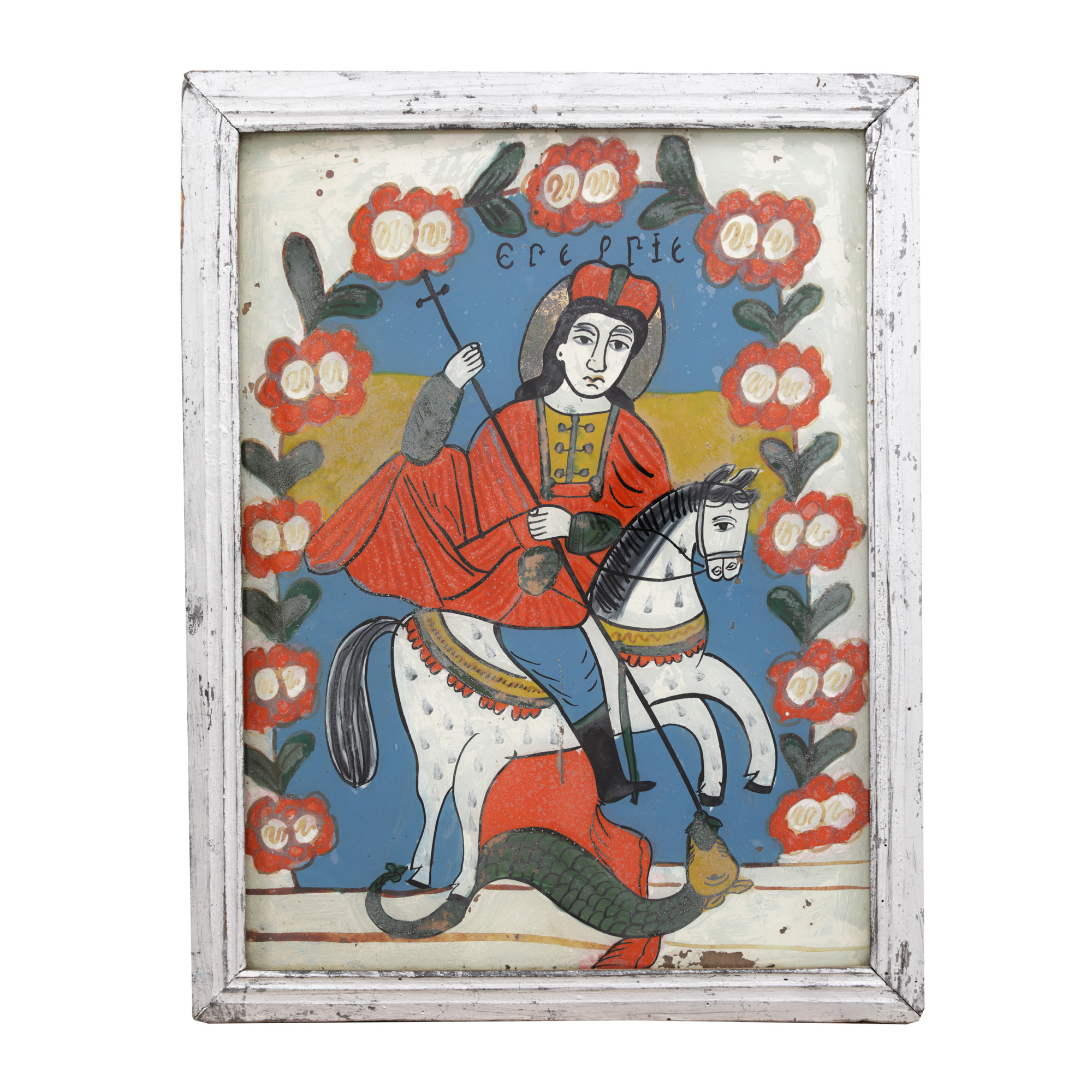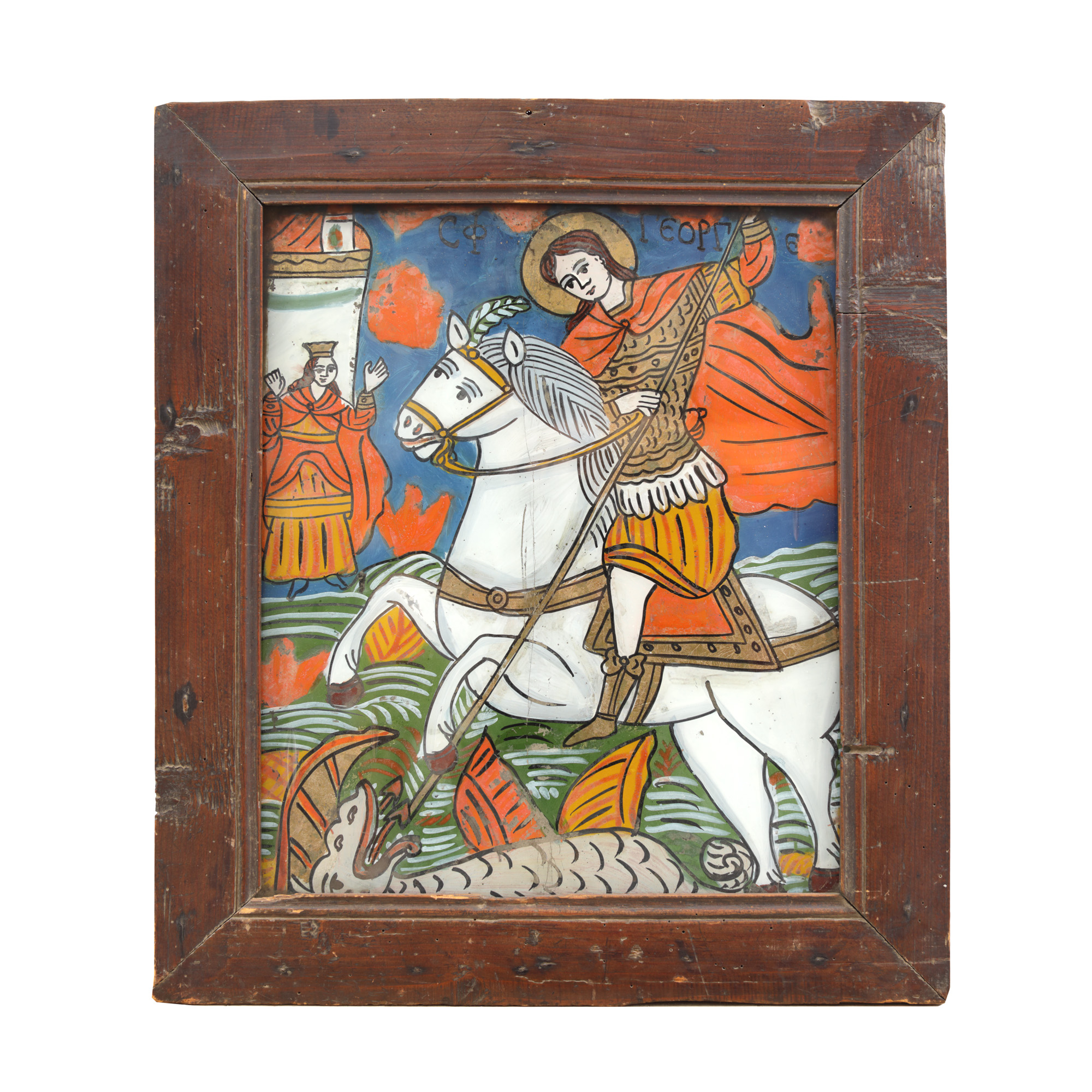 19. Icoană pe glajă, "Sfântul Gheorghe omorând balaurul", atelier din Gherla, începutul sec. XX