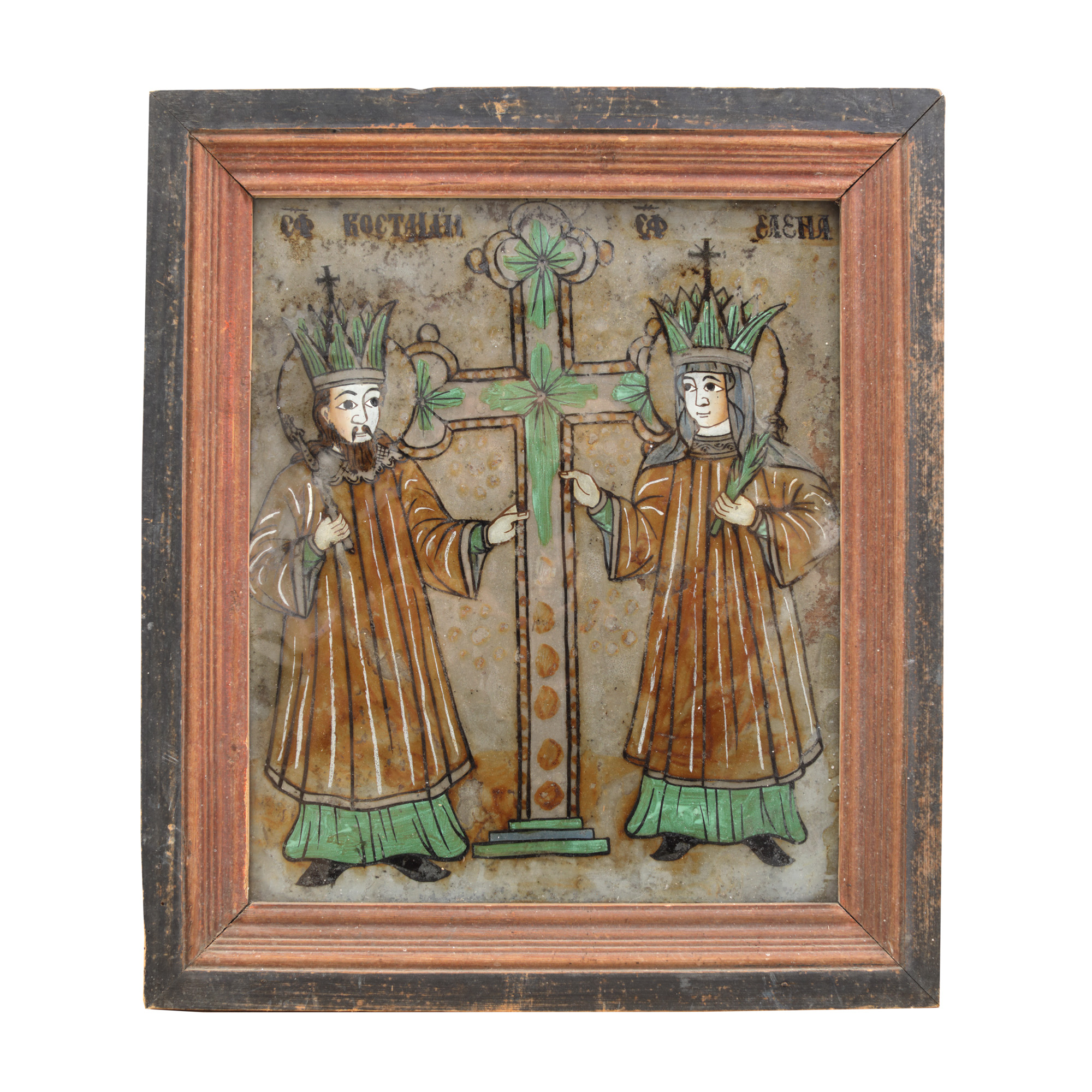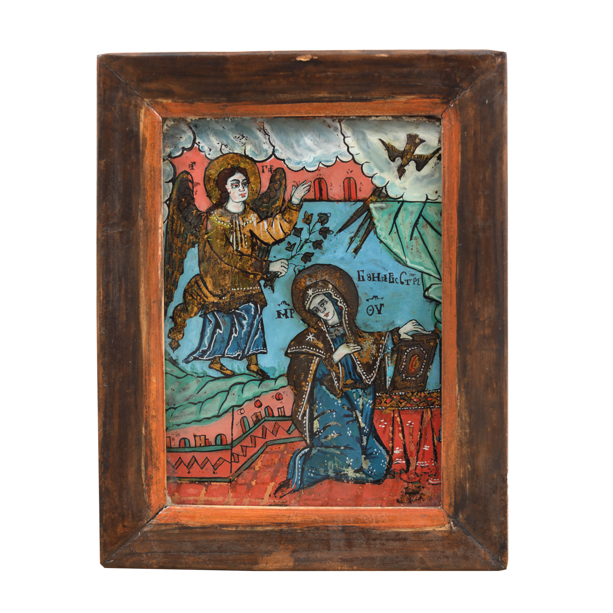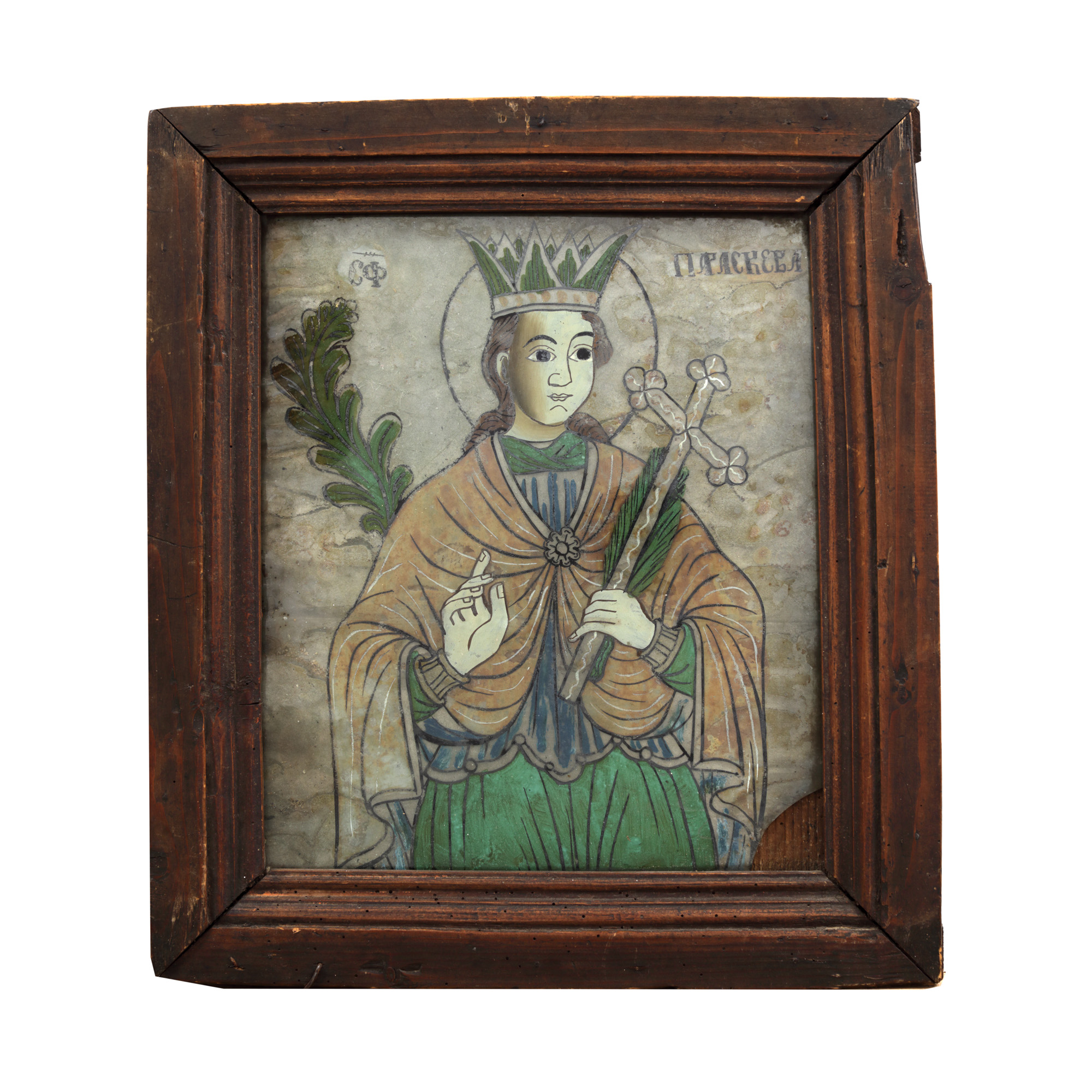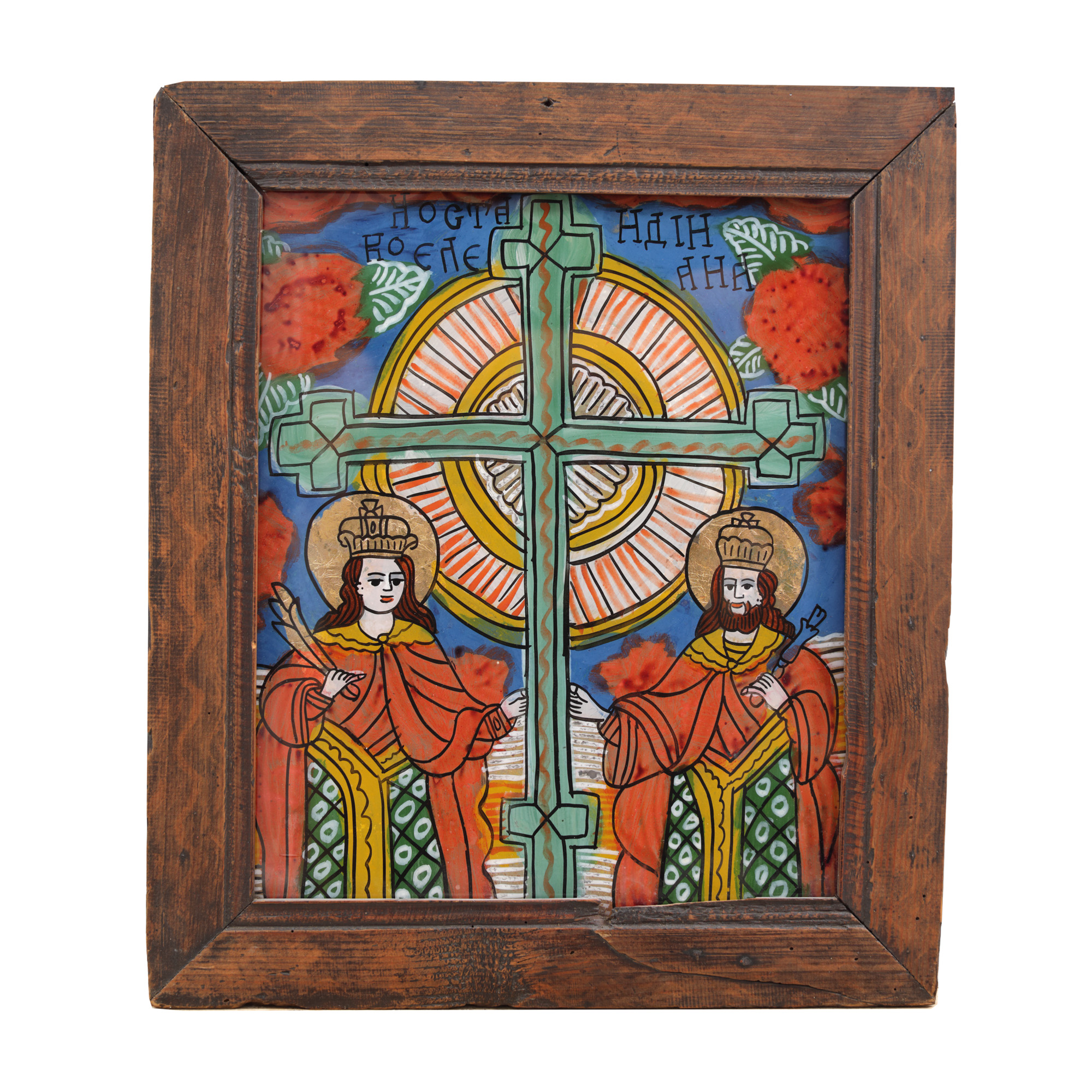 19. Icoană pe glajă, "Sfântul Gheorghe omorând balaurul", atelier din Gherla, începutul sec. XX
