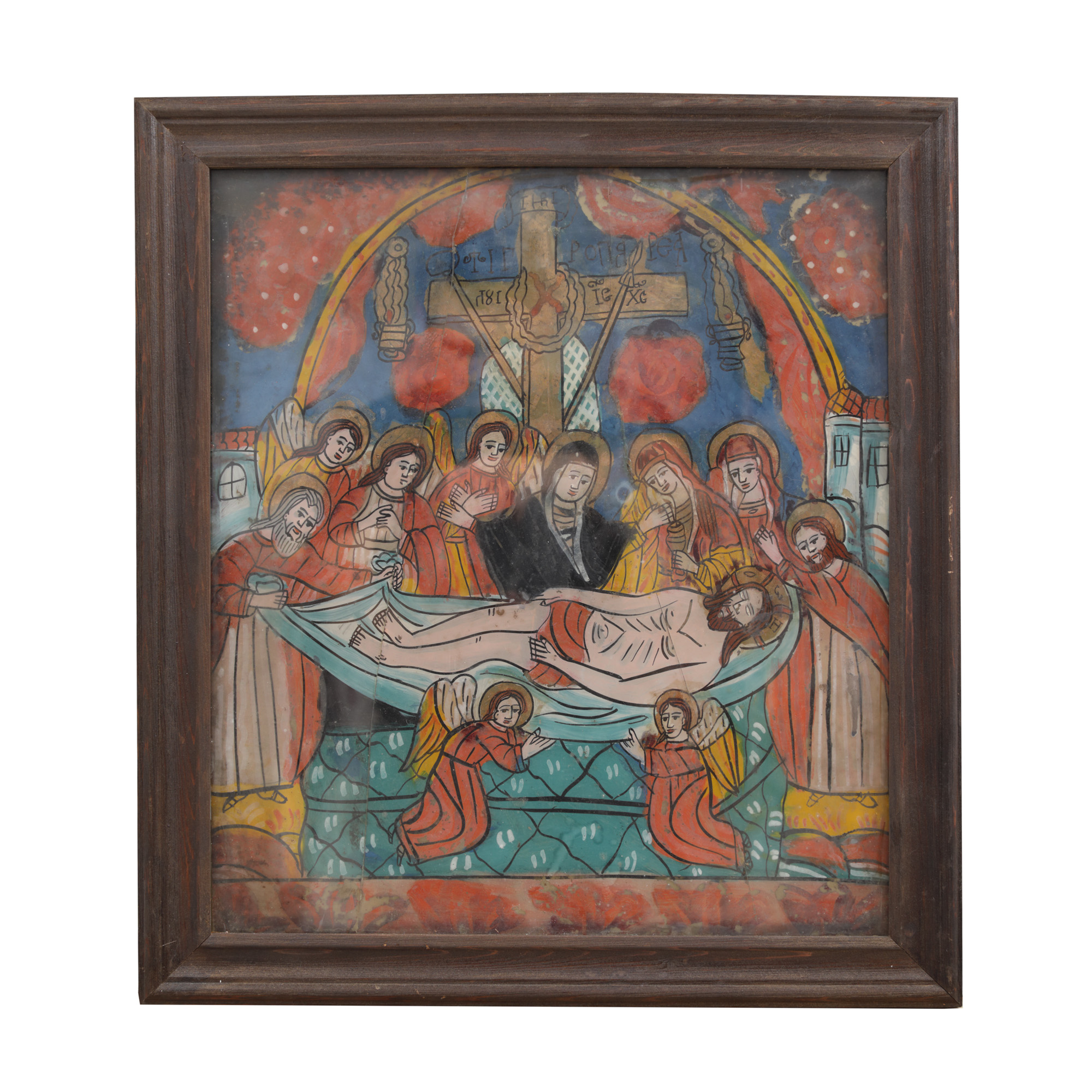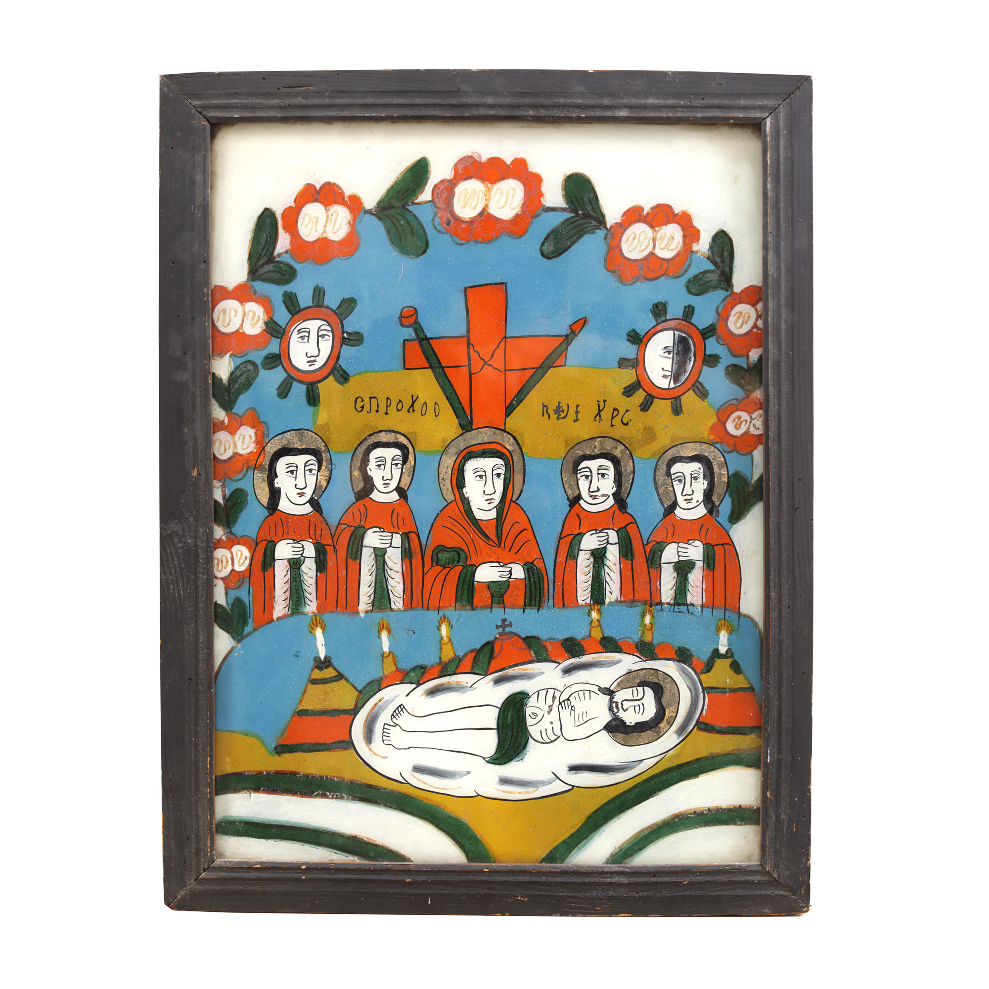 20. Icoană pe glajă, ”Plângerea Domnului”, atelier din Gherla, sfârșitul sec. XIX