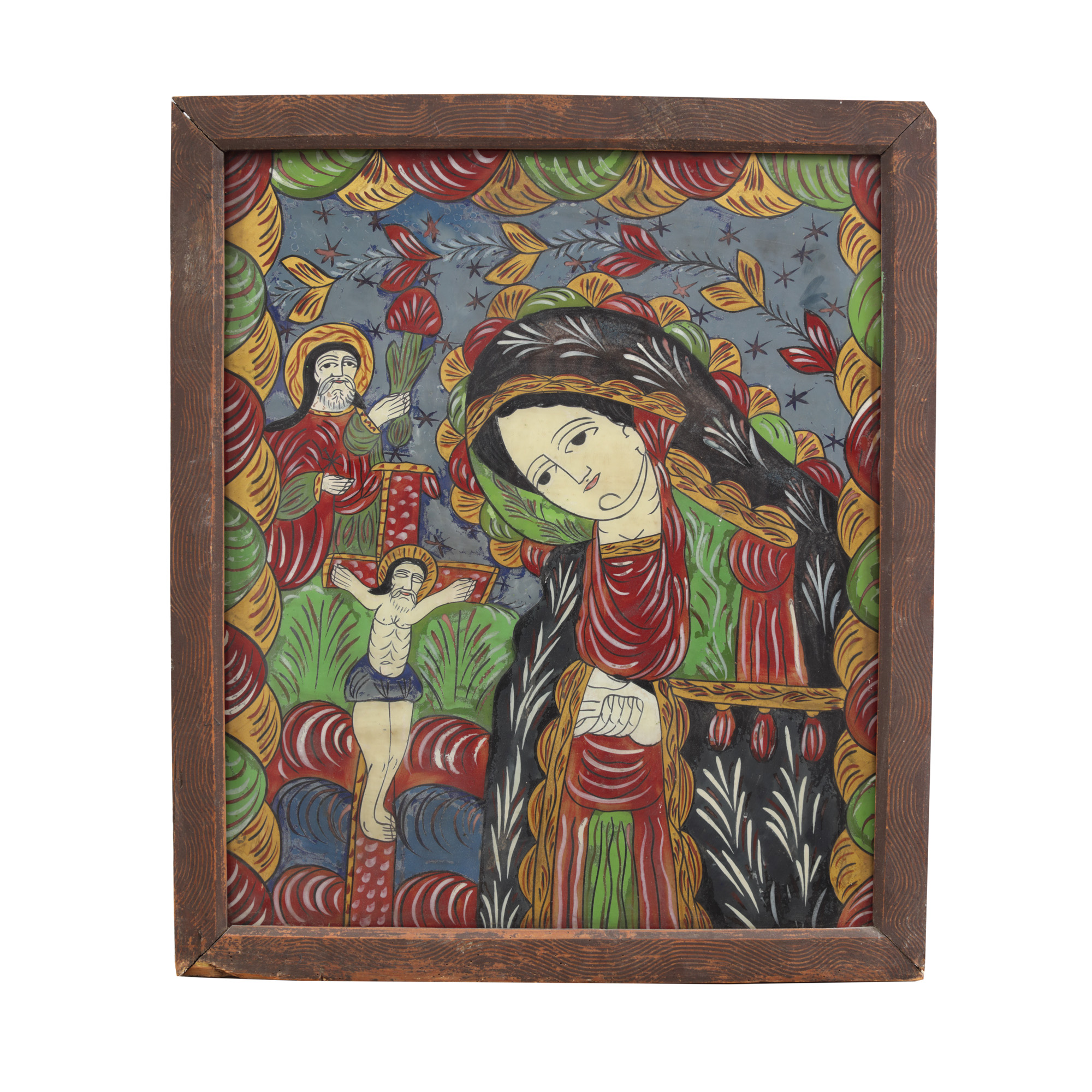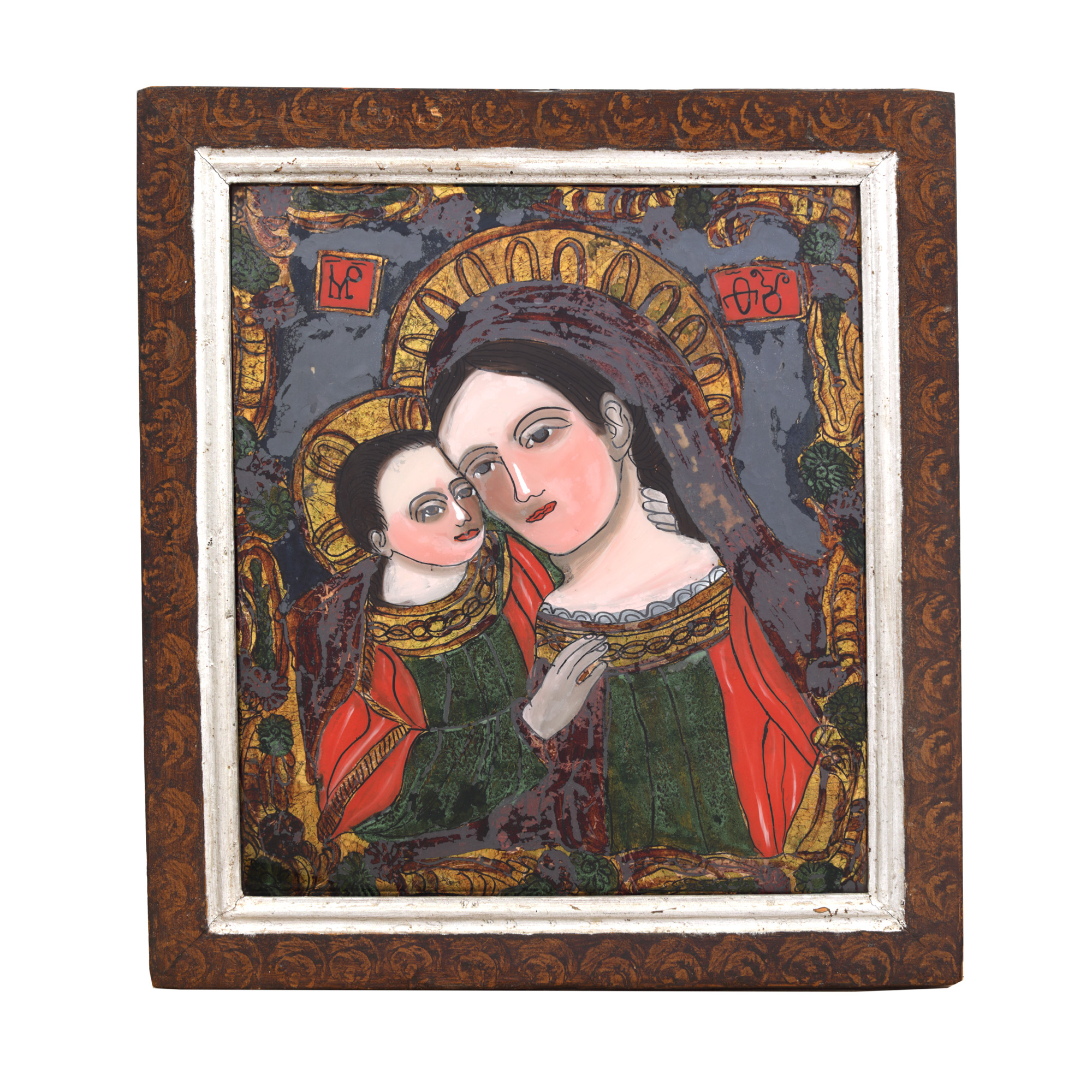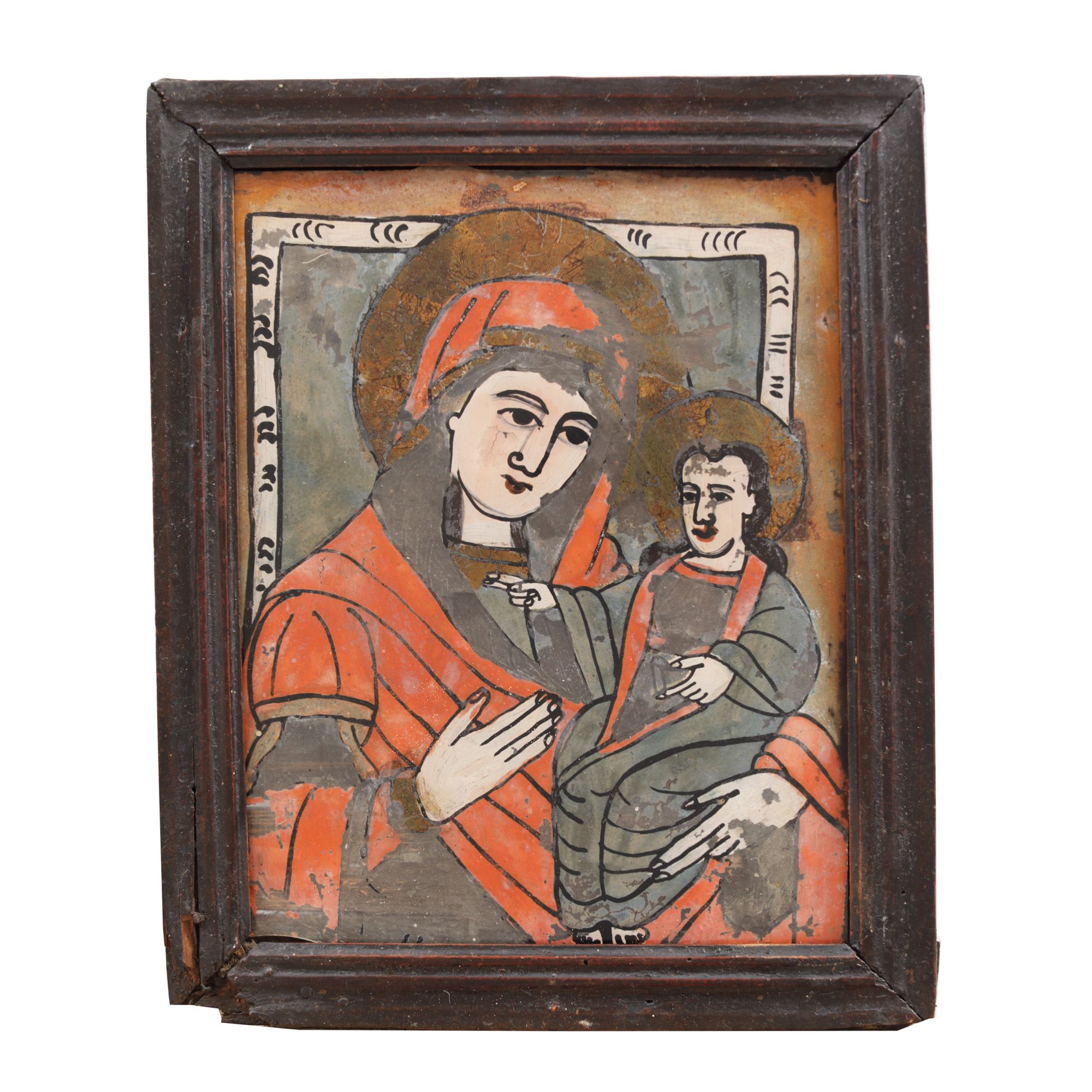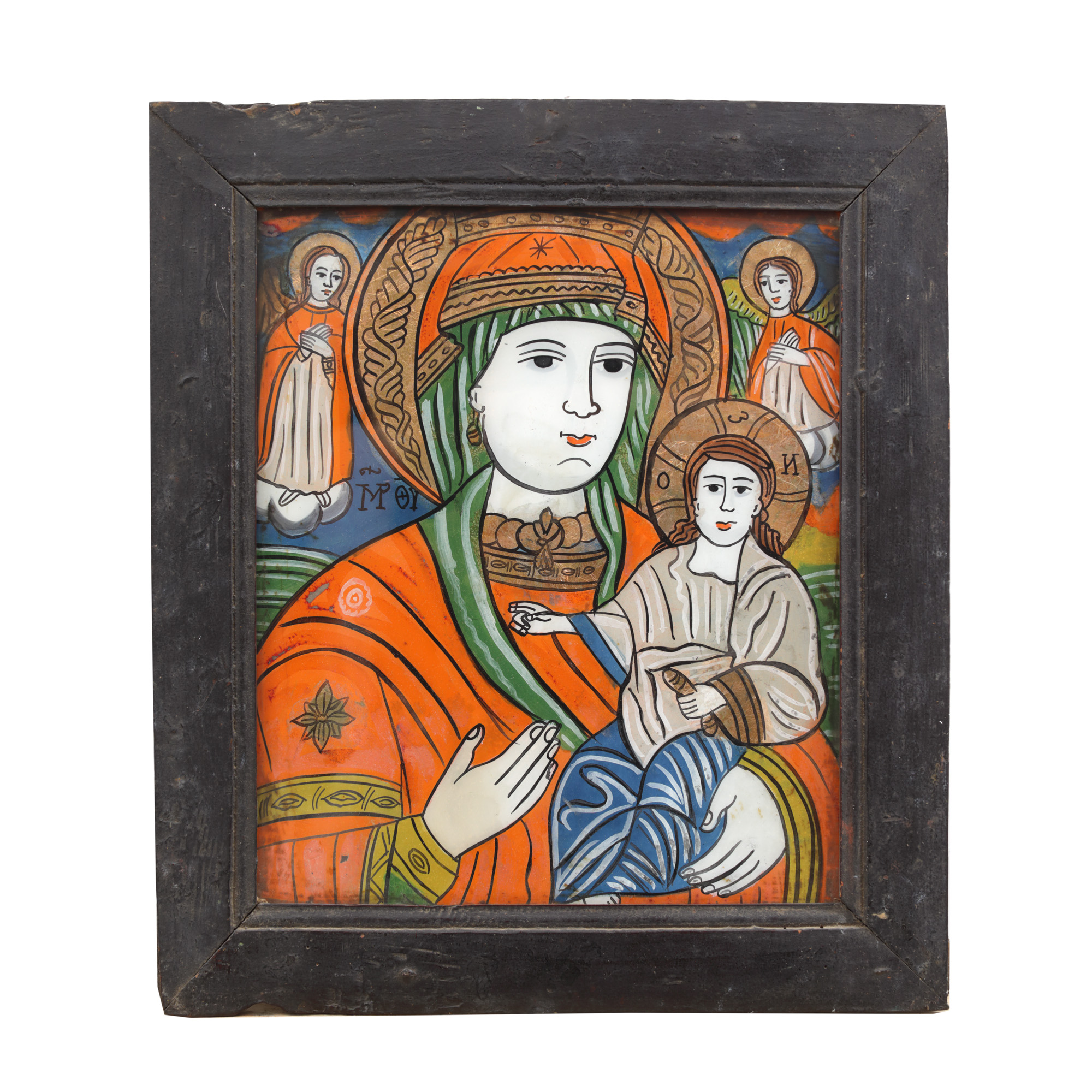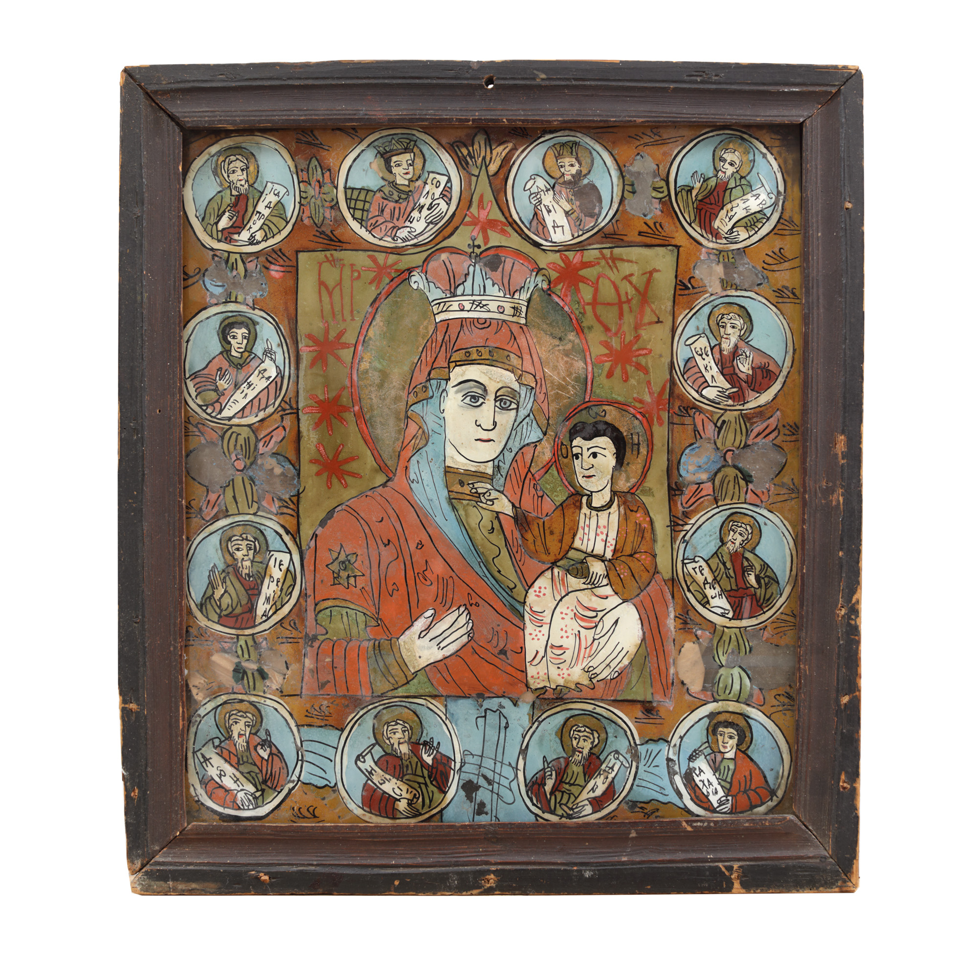 31. Icoană pe glajă, ”Maica Domnului cu Pruncul”, atelier din Nicula, a doua jumătate a sec. XIX