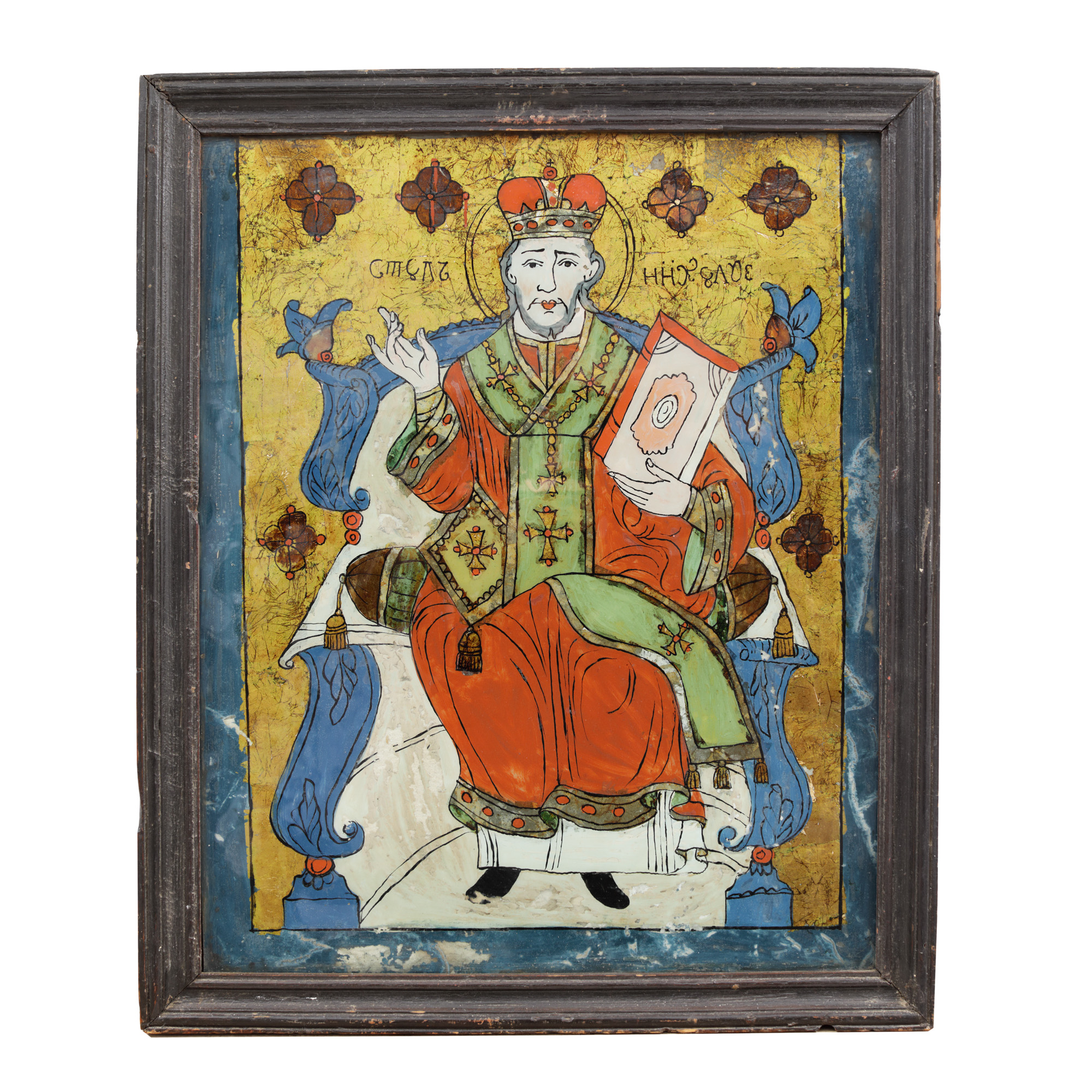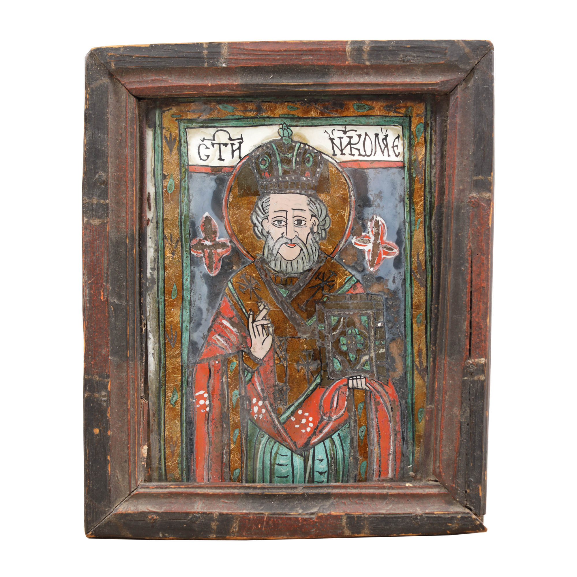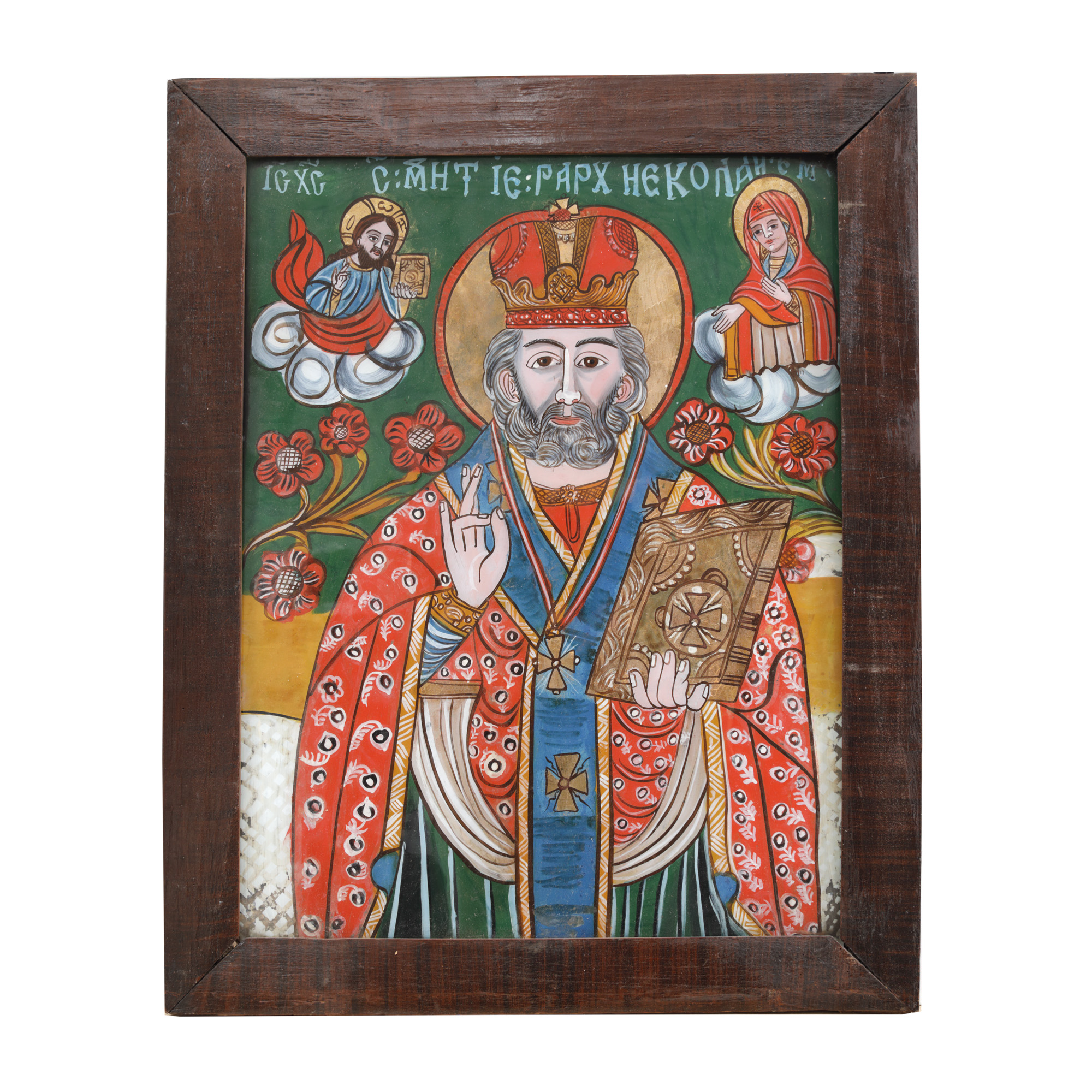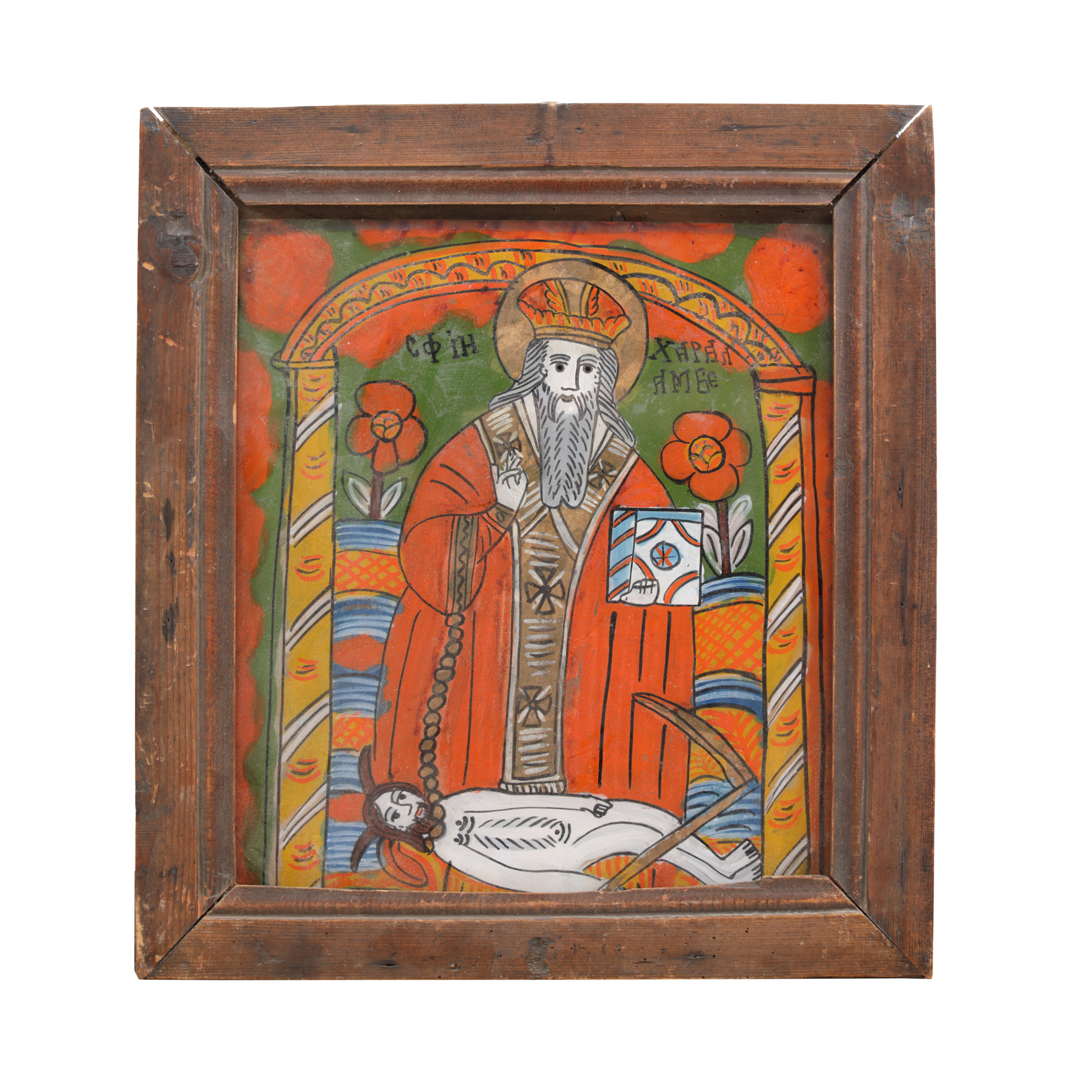 24. Icoană pe glajă, ”Sfântul Nicolae”, atelier din Șcheii Brașovului, a doua jumătate a sec. XIX
