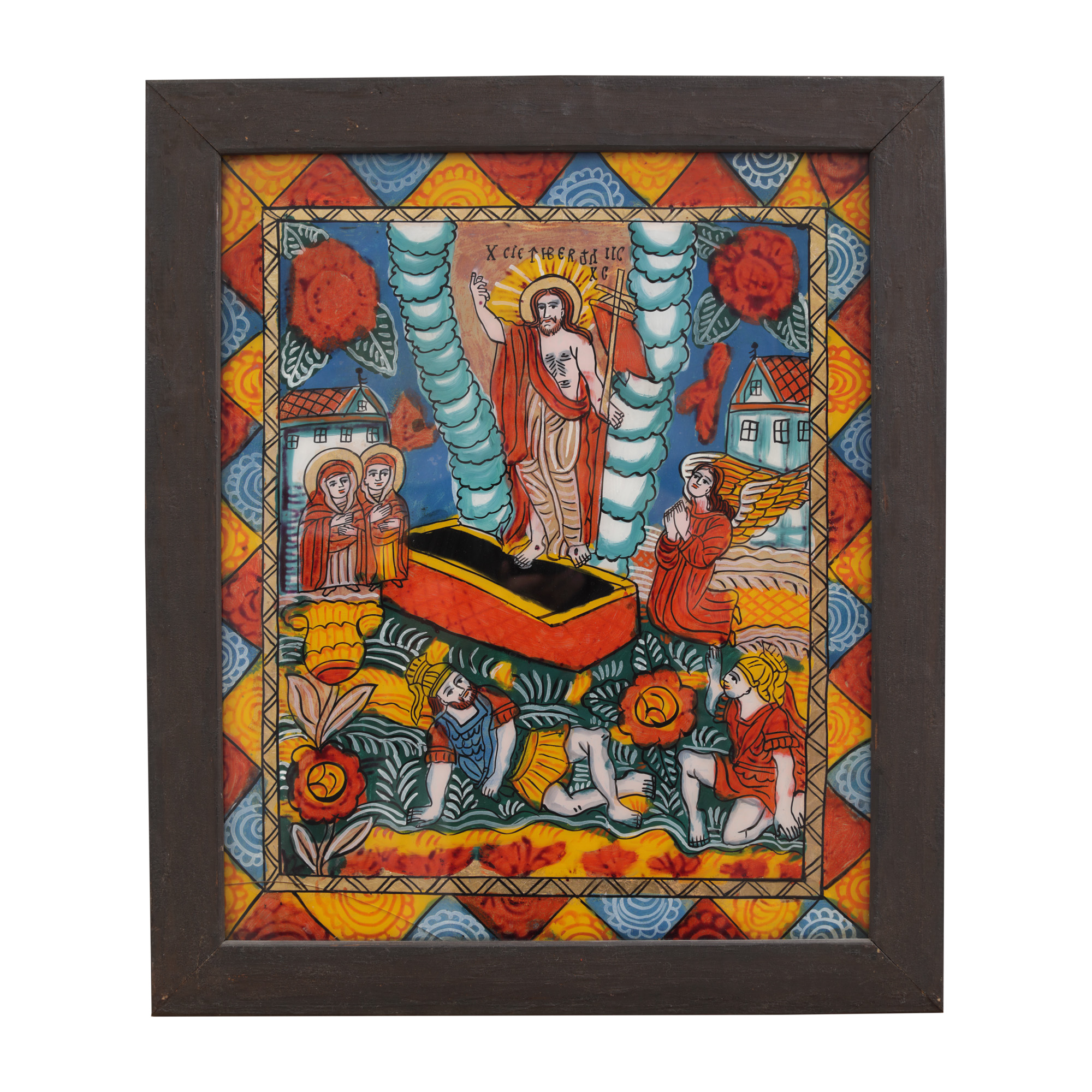 32. Icoană pe glajă, ”Învierea Domnului”, atelier din Nicula, prima jumătate a sec. XIX