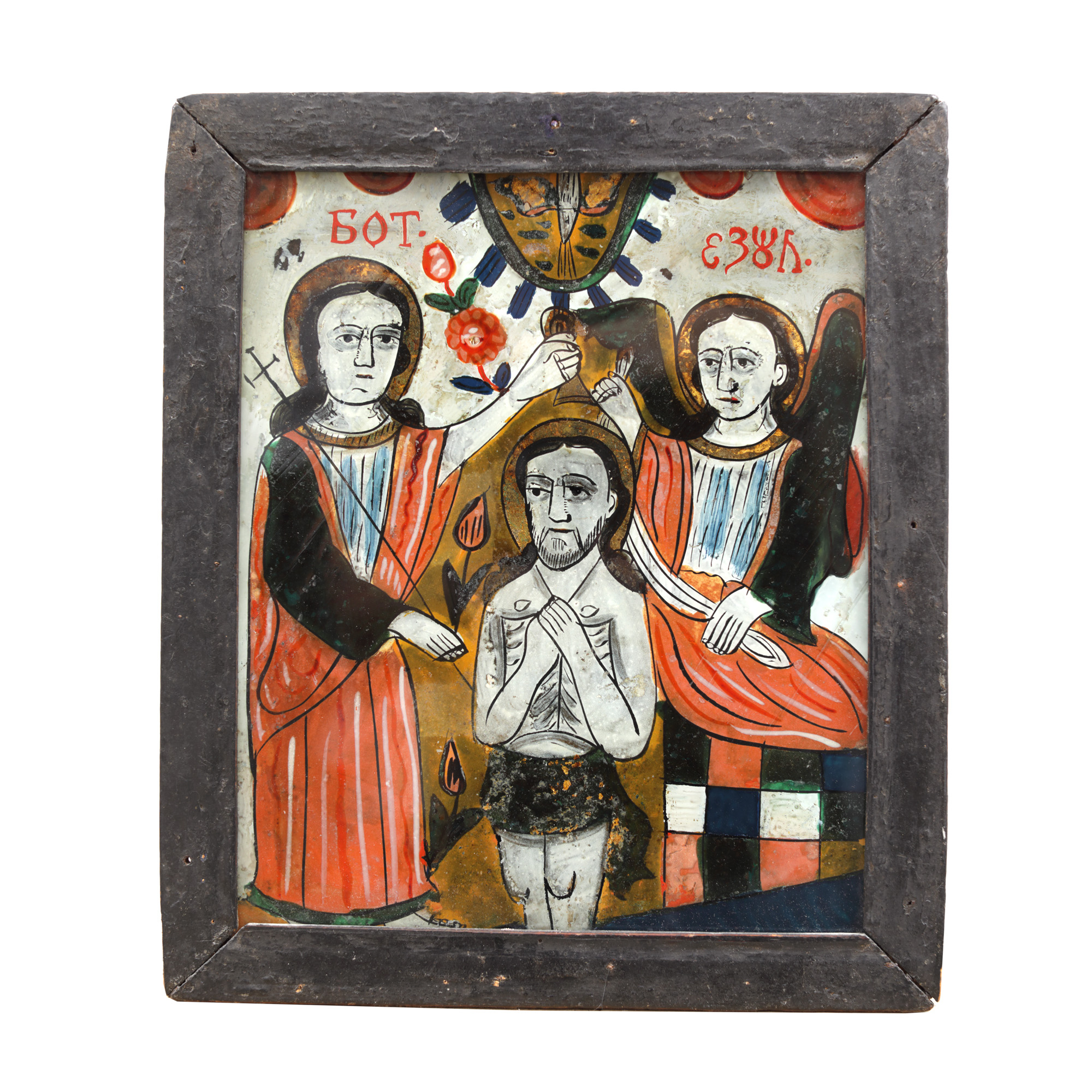 21. Icoană pe glajă, ”Botezul Domnului”, atelier din Gherla, sfârșitul sec. XIX