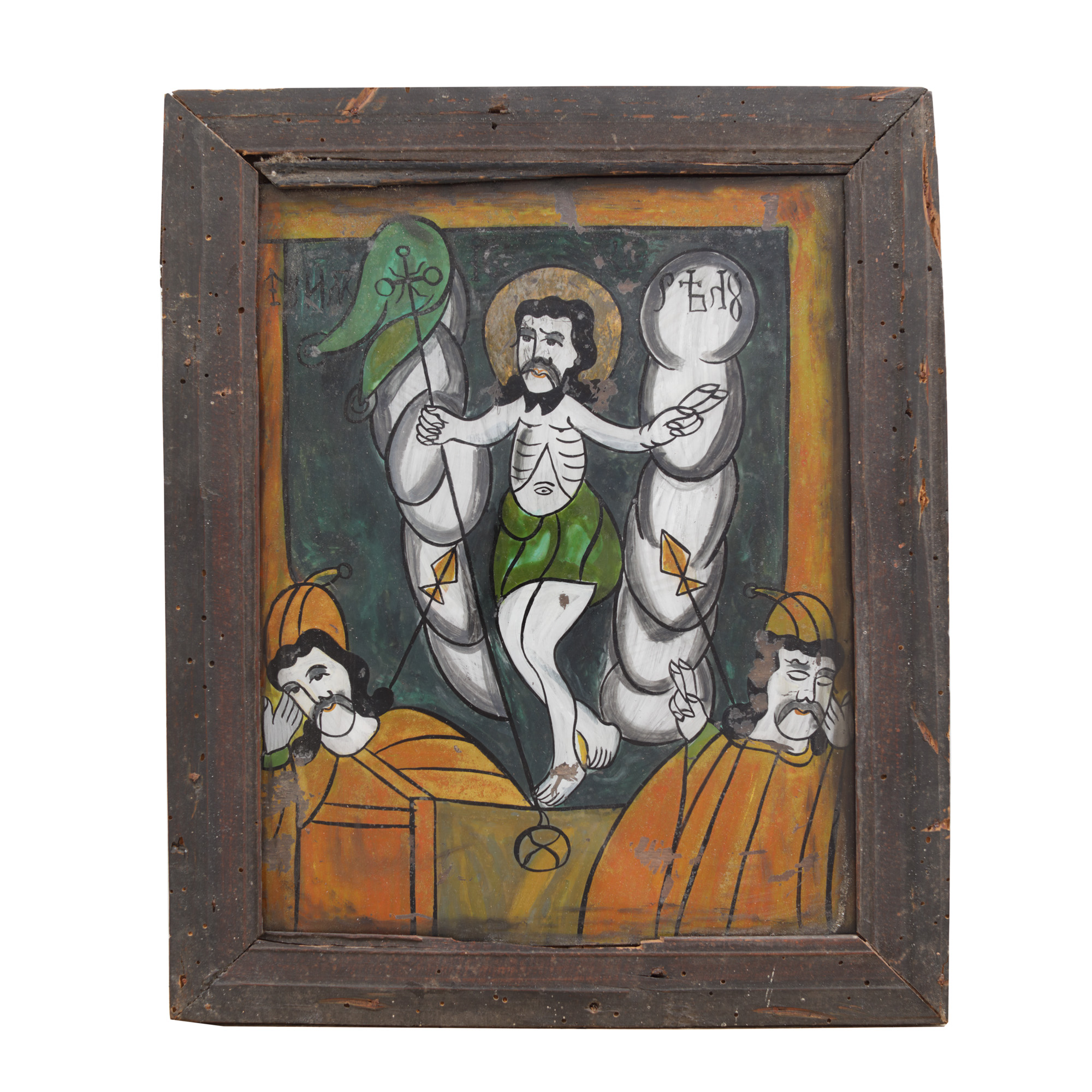 2. Icoană pe glajă, ”Învierea Domnului”, atelier din Șcheii Brașovului, a doua jumătate a sec. XIX