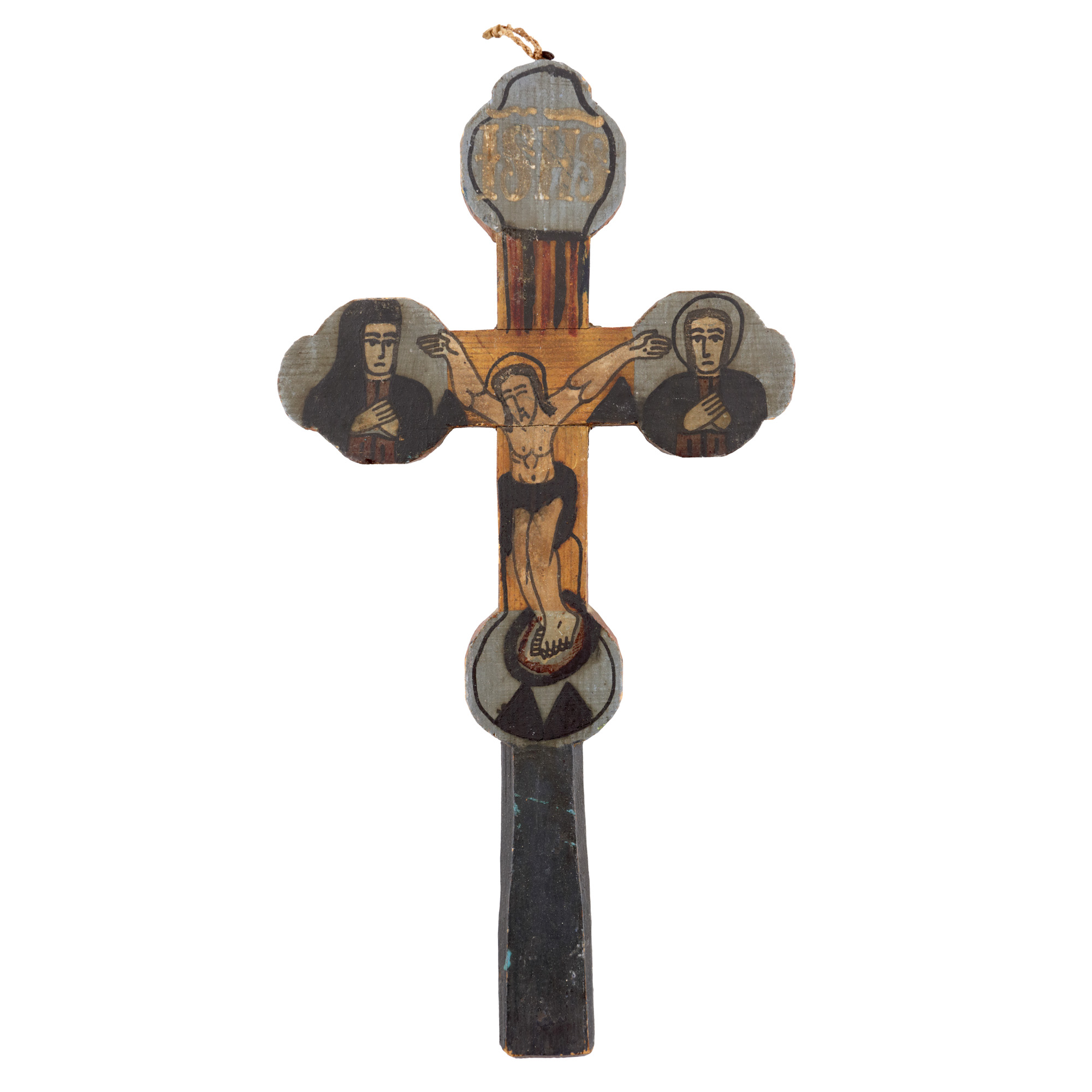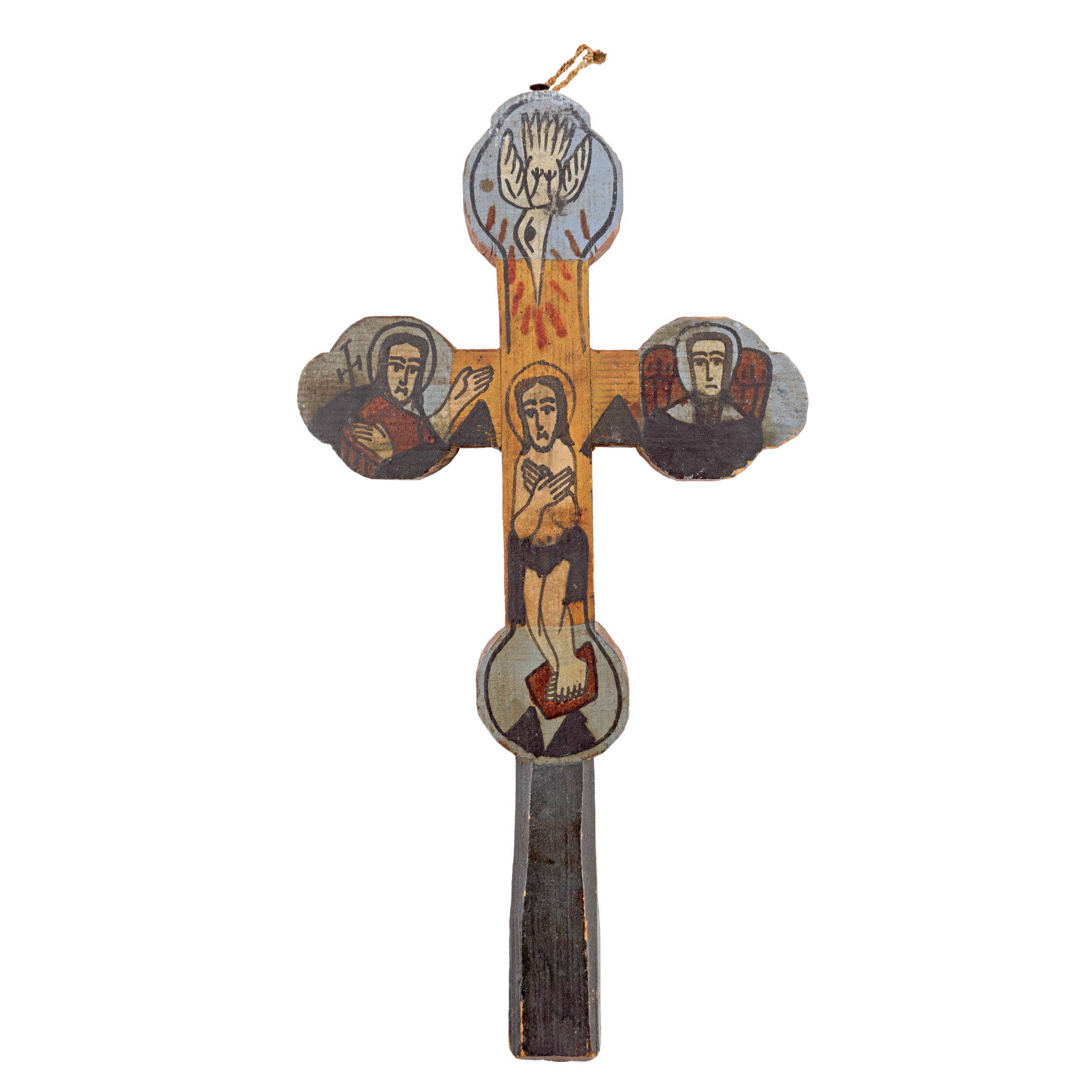 51. Cruce de mână, decorată cu scenele ”Răstignirii” și ”Botezului”, atelierul familiei Poienaru din Laz, începutul sec. XX