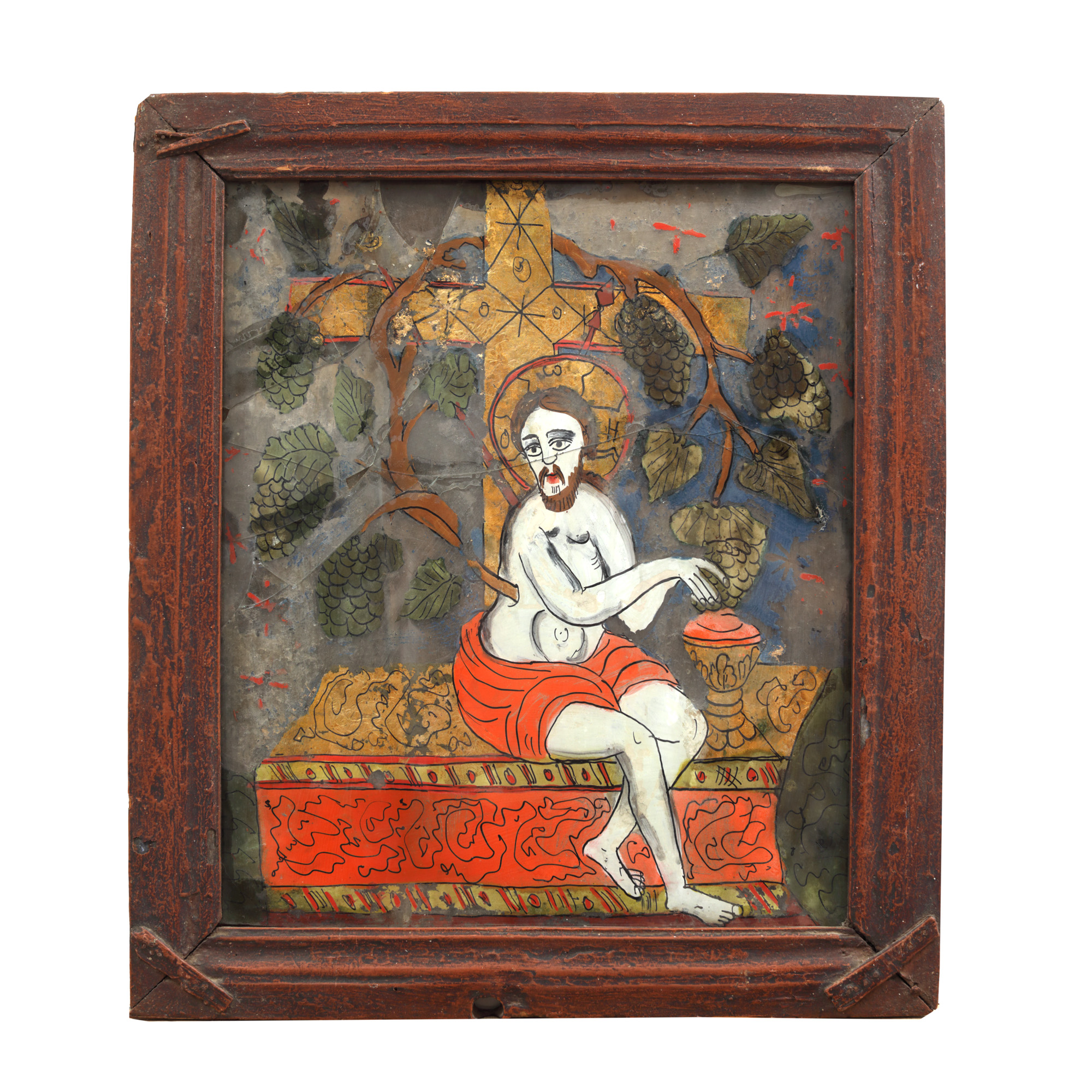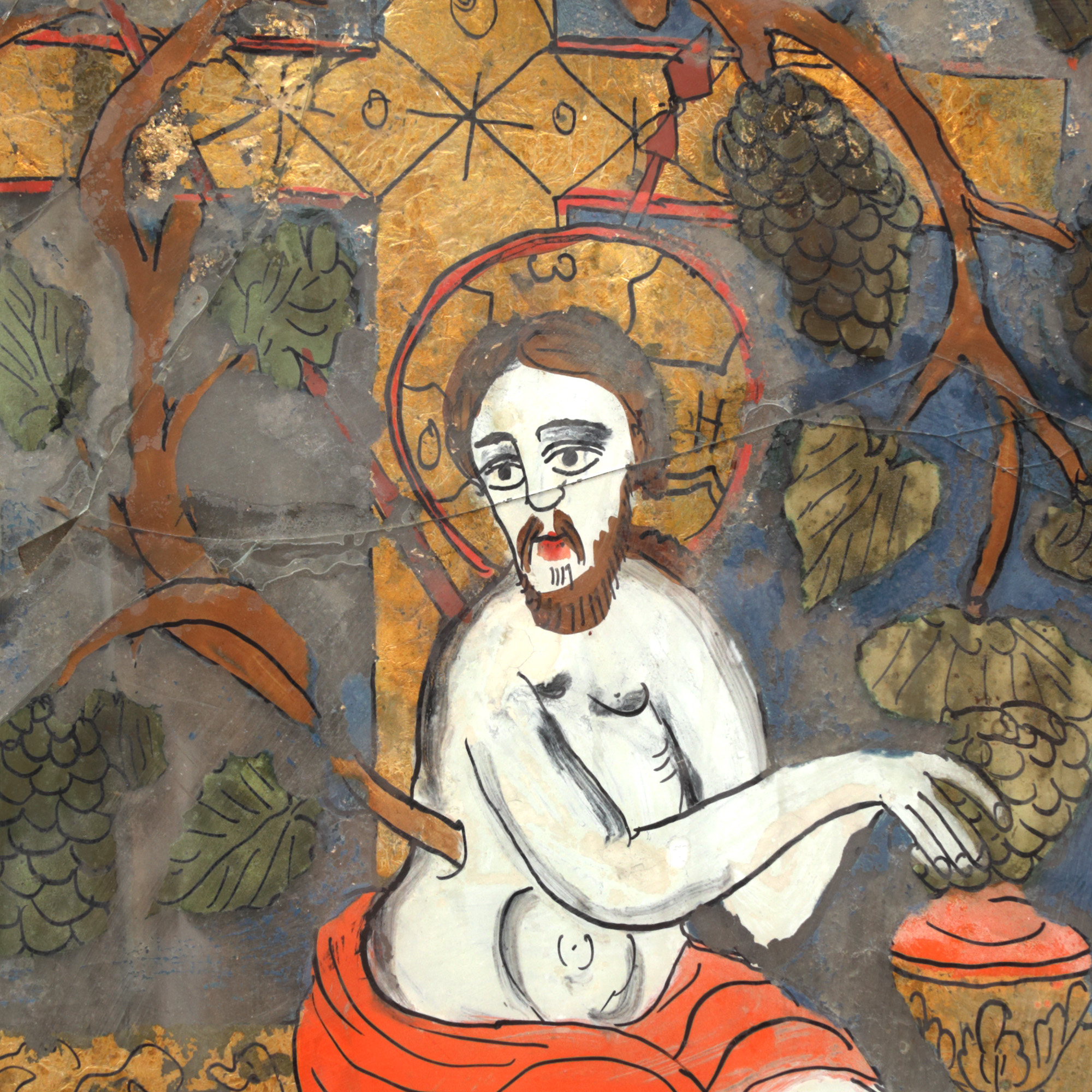 45. Icoană pe glajă, ”Iisus cu Viță de Vie”, atelier din Făgăraş‐Rupea, mijlocul sec. XIX