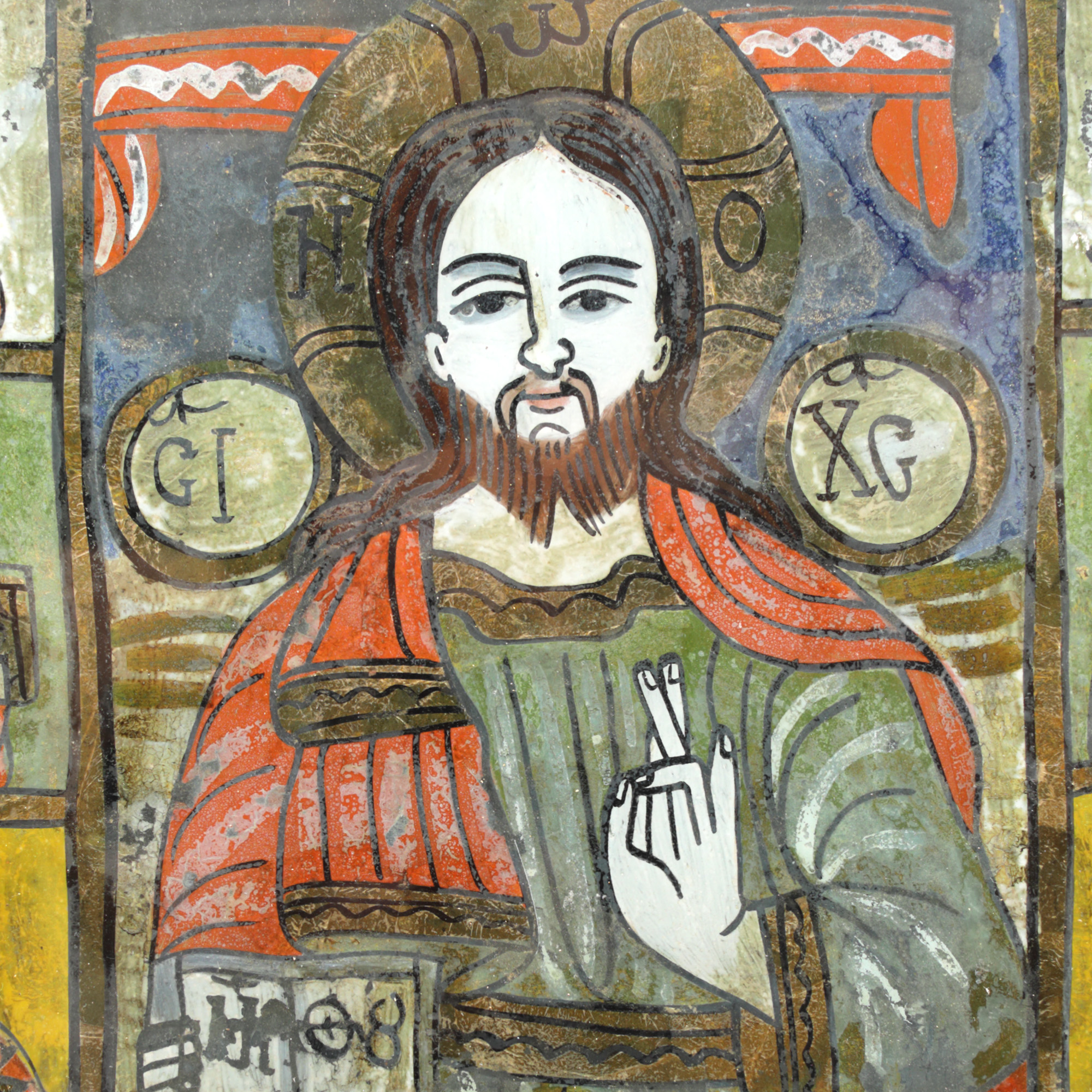 8. Icoană pe glajă, "Iisus Învățător, înconjurat de sfinți", atelier din Șcheii Brașovului, a doua jumătate a sec. XIX, piesă rară, de colecție