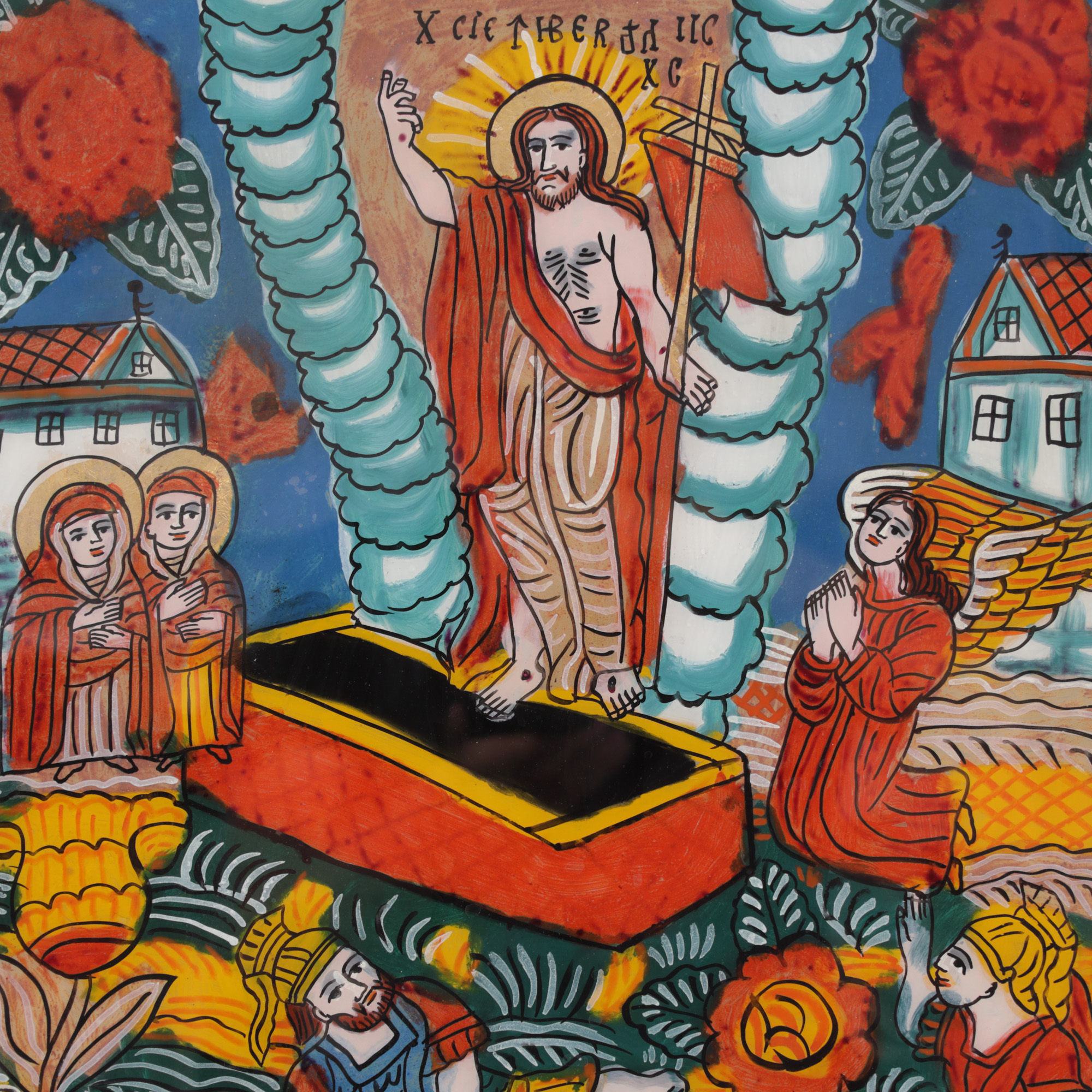 2. Icoană pe glajă, ”Învierea Domnului”, atelier din Șcheii Brașovului, a doua jumătate a sec. XIX