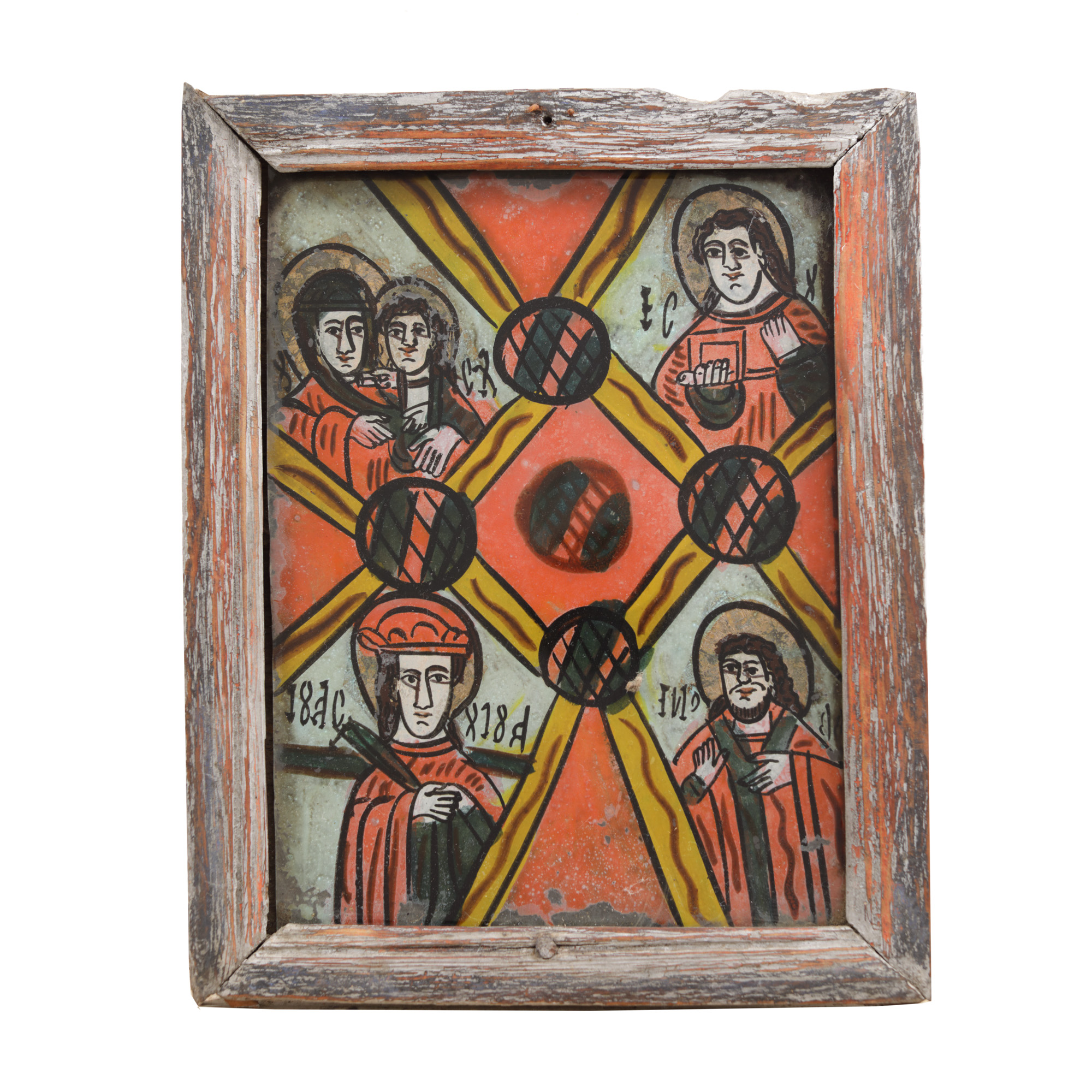 46. Icoană pe glajă, "Masa Raiului", atelier din Nicula, a doua jumătate a sec. XIX