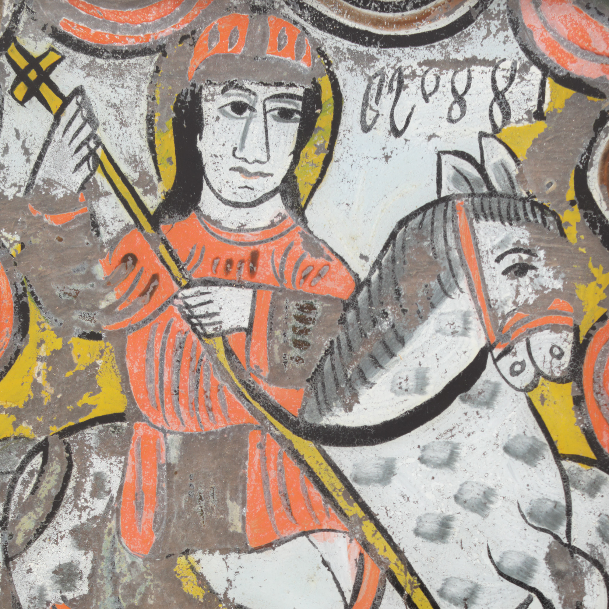 33. Icoană pe glajă, "Sfântul Gheorghe omorând balaurul", atelier din Nicula, sfârșitul sec. XIX
