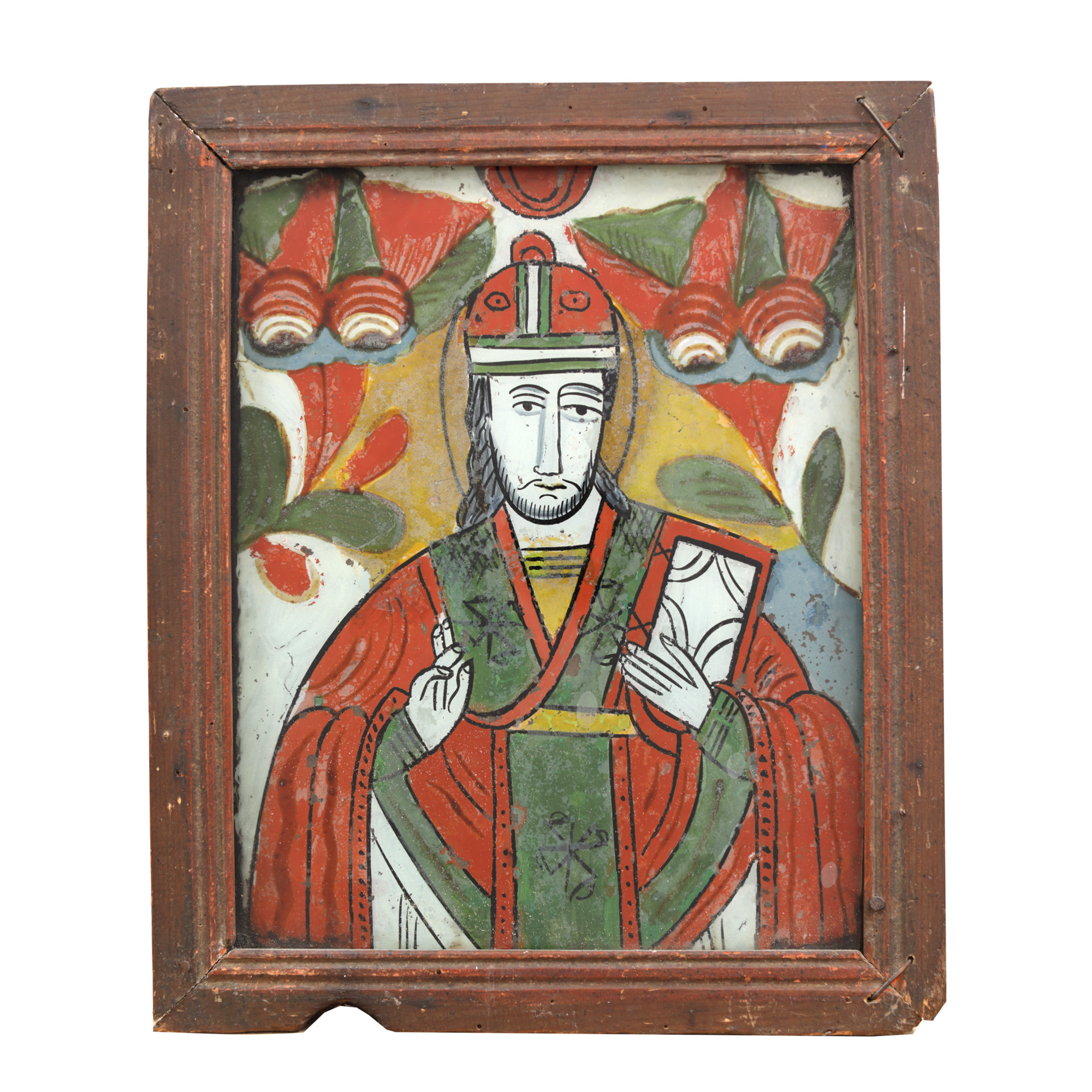52. Icoană pe glajă, ”Sfântul Nicolae”, atelier din Nicula, jumătate a sec. XIX