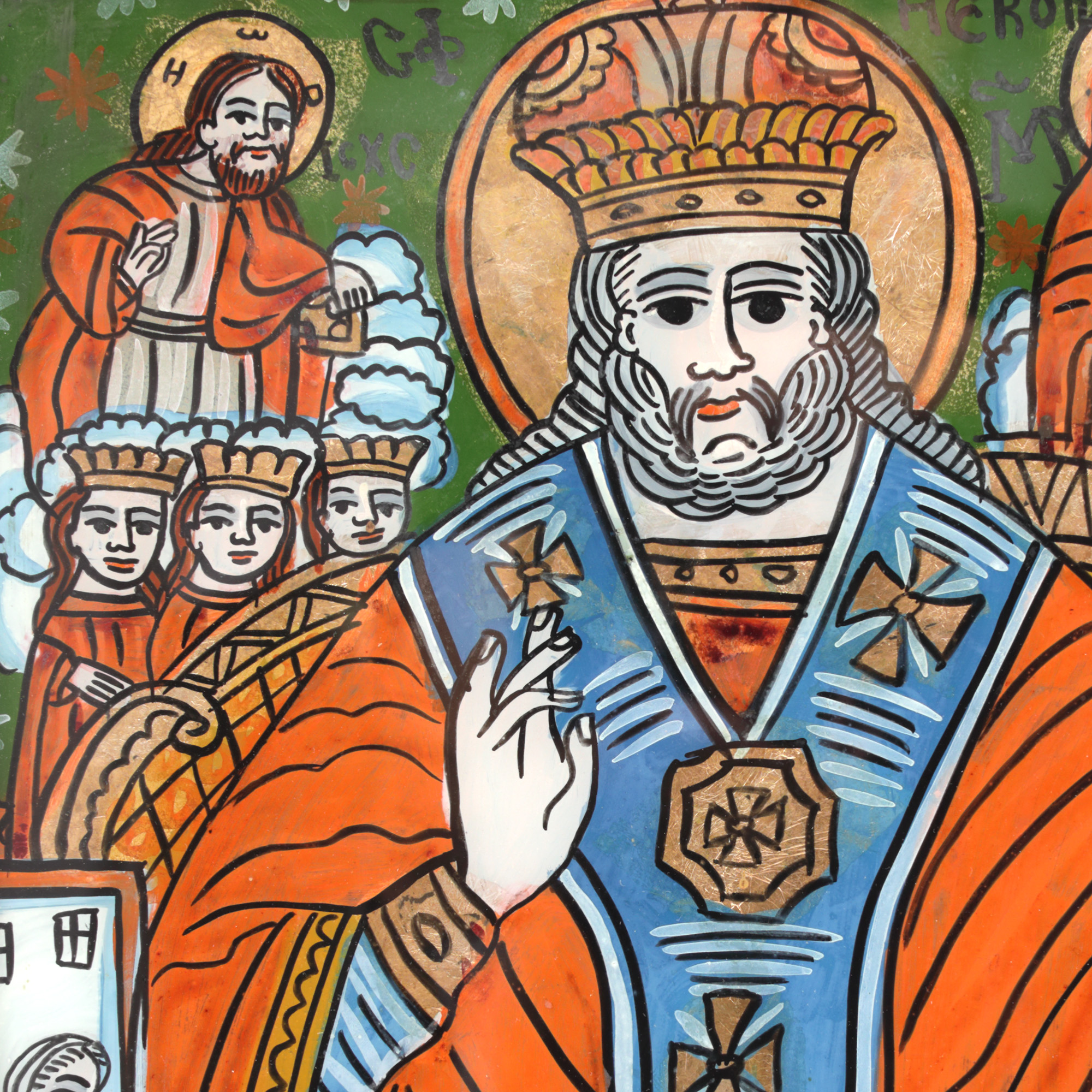 24. Icoană pe glajă, ”Sfântul Nicolae”, atelier din Șcheii Brașovului, a doua jumătate a sec. XIX