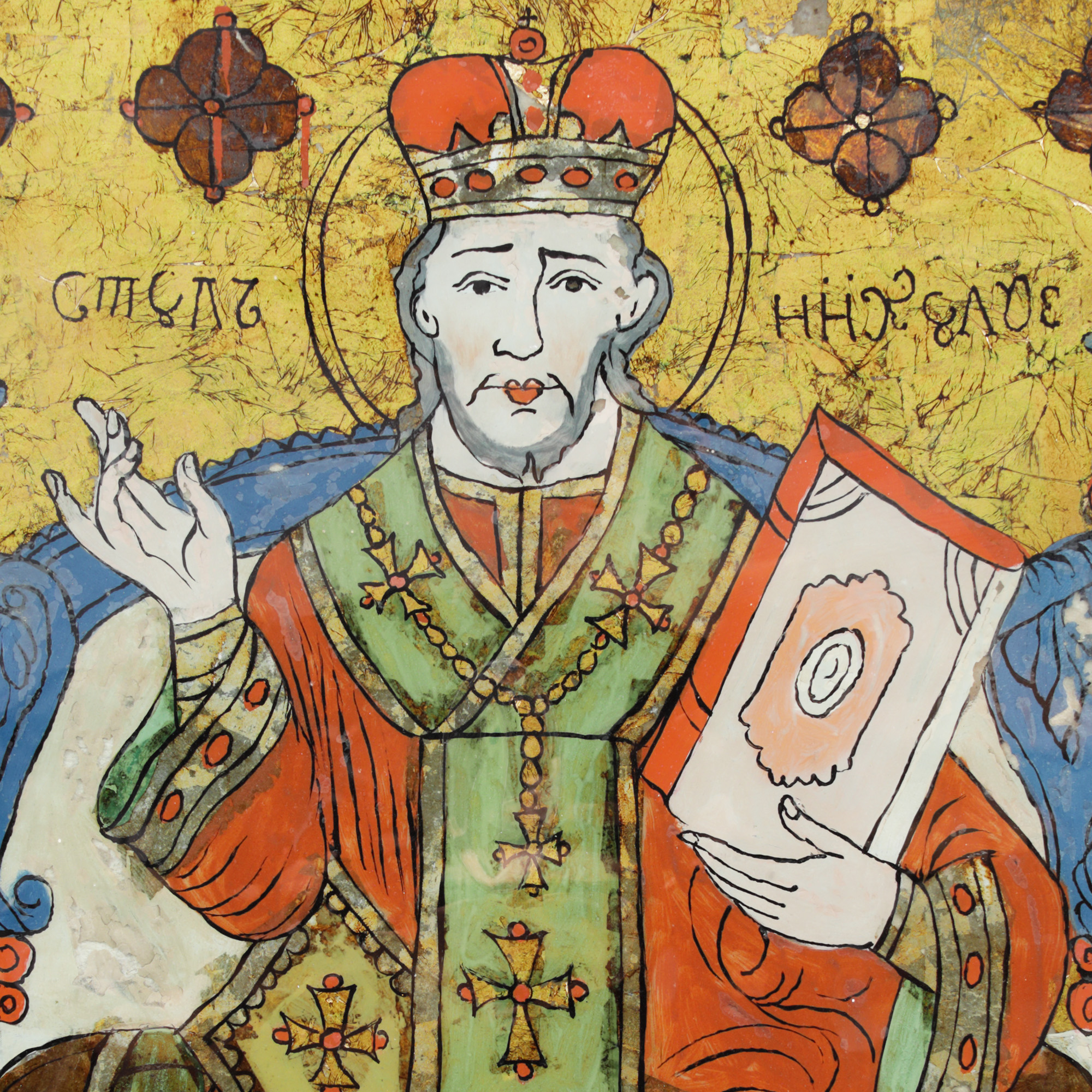 27. Icoană pe glajă, ”Sfântul Nicolae pe tron", primul atelier de la Nicula, 1799, piesă rară, de colecție