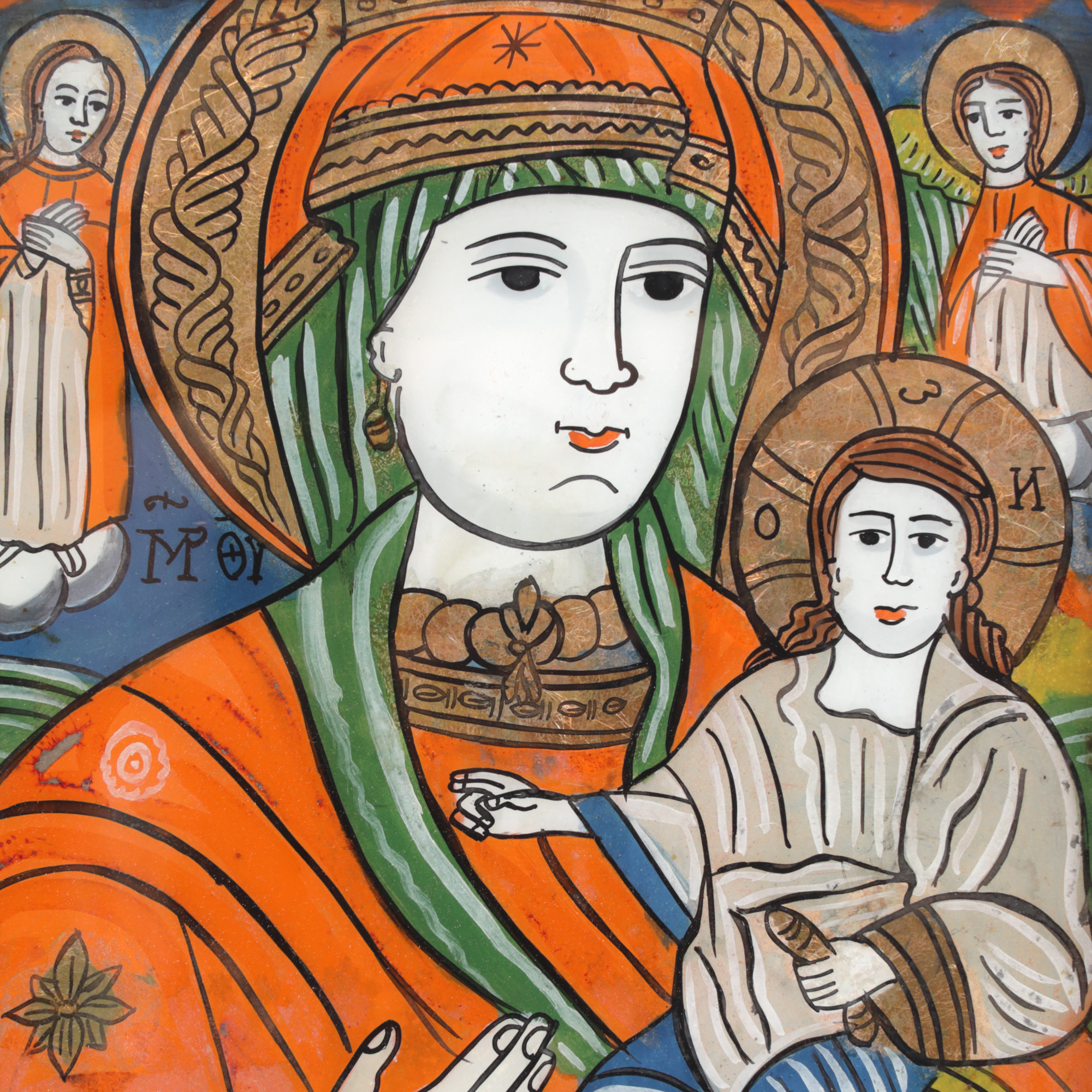 13. Icoană pe sticlă, ”Maica Domnului cu Pruncul (Hodighitria)", atelier din Șcheii Brașovului, a doua jumătate a sec. XIX