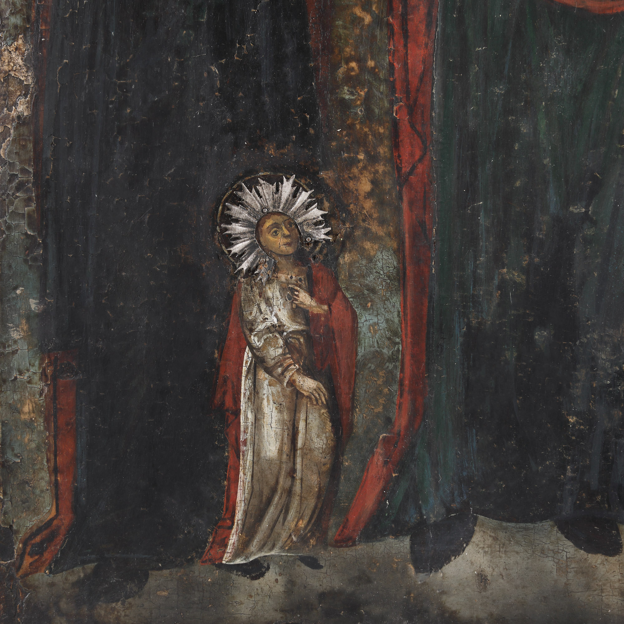 tempera grasă pe lemn; argint 800