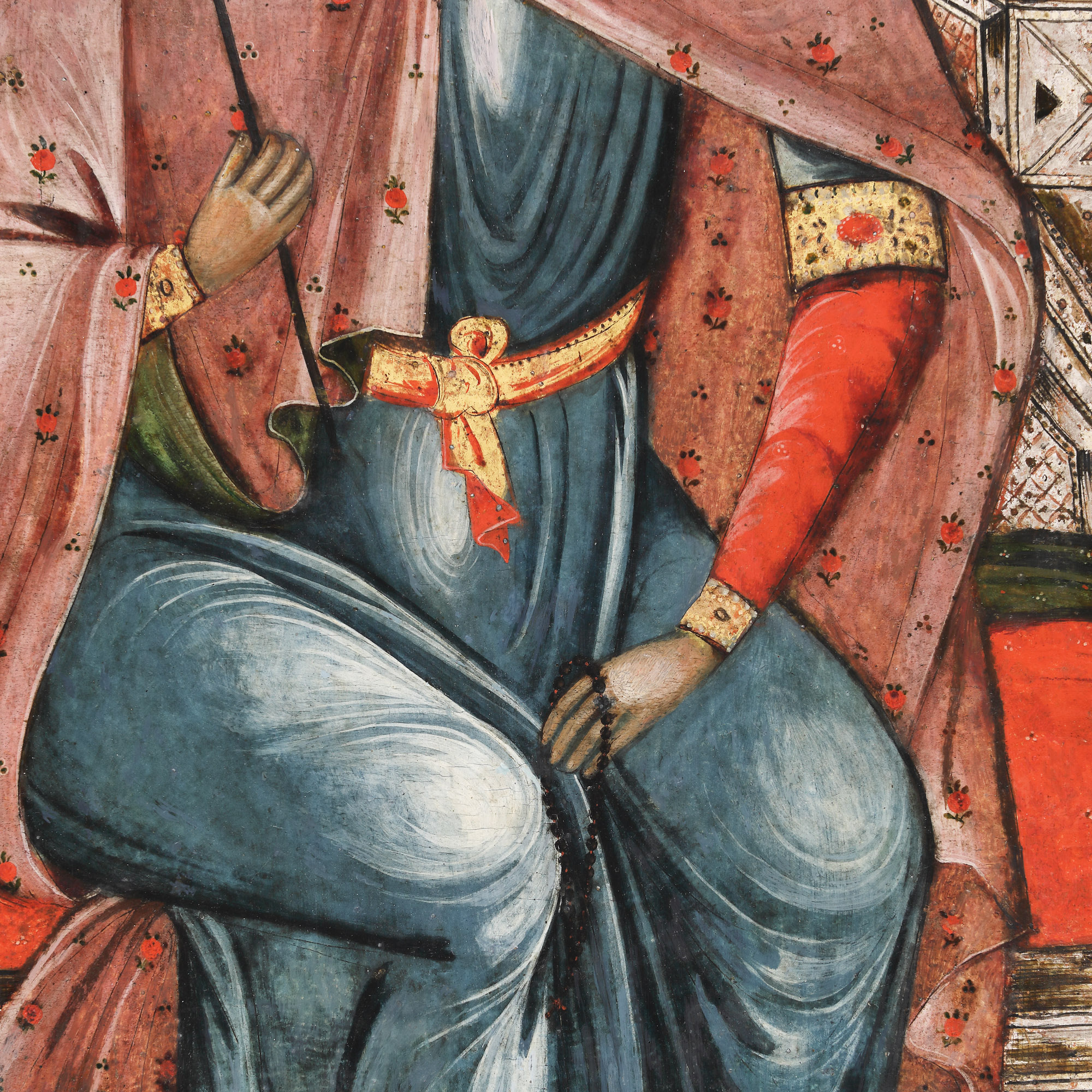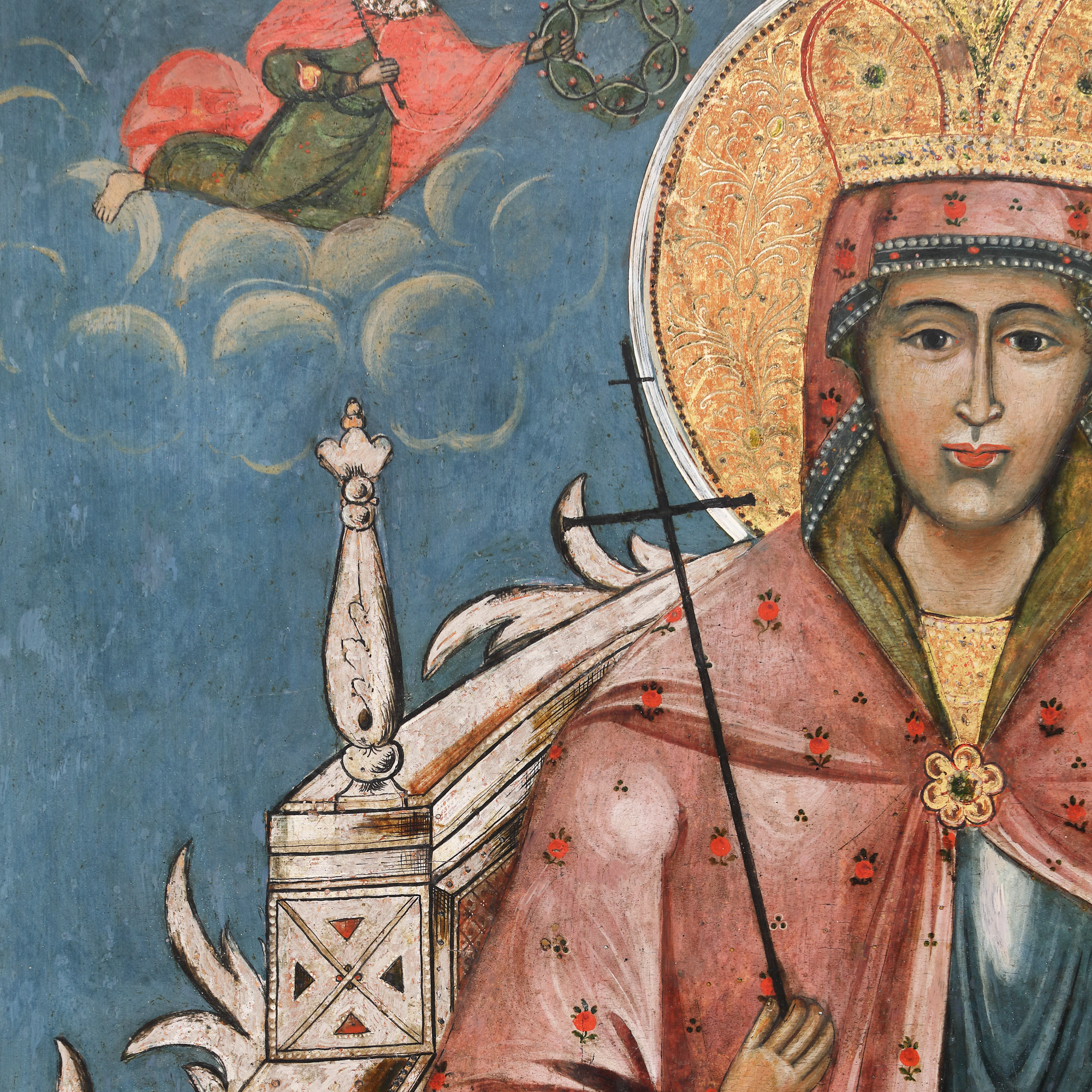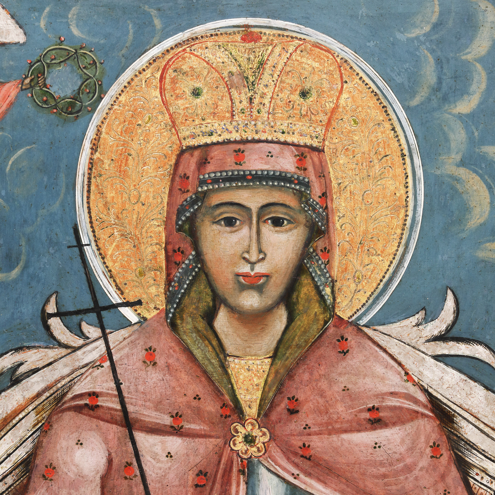 36. Icoană împărătească pe lemn, ”Sfânta Cuvioasă Paraschiva tronând” (Sfânta Vineri, Ocrotitoarea Moldovei), școală post-brâncovenească, primele decenii ale sec. XIX, piesă foarte rară, de colecție