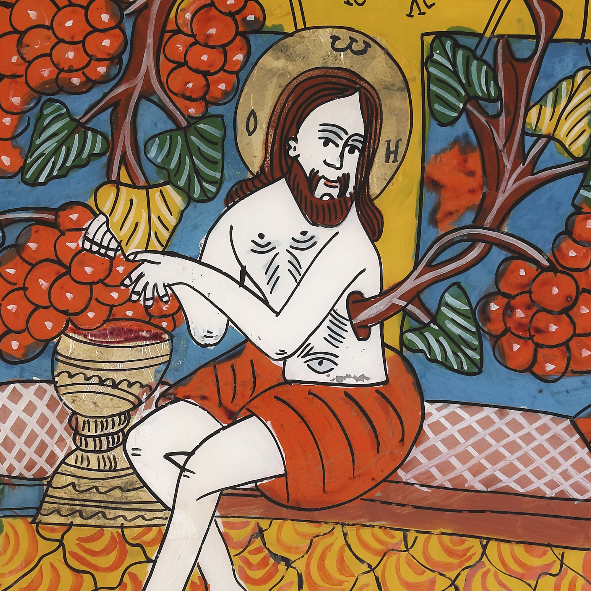 26. Icoană pe glajă, ”Iisus Vița cea adevărată”, atelier din Șcheii Brașovului, a doua jumătate a sec. XIX