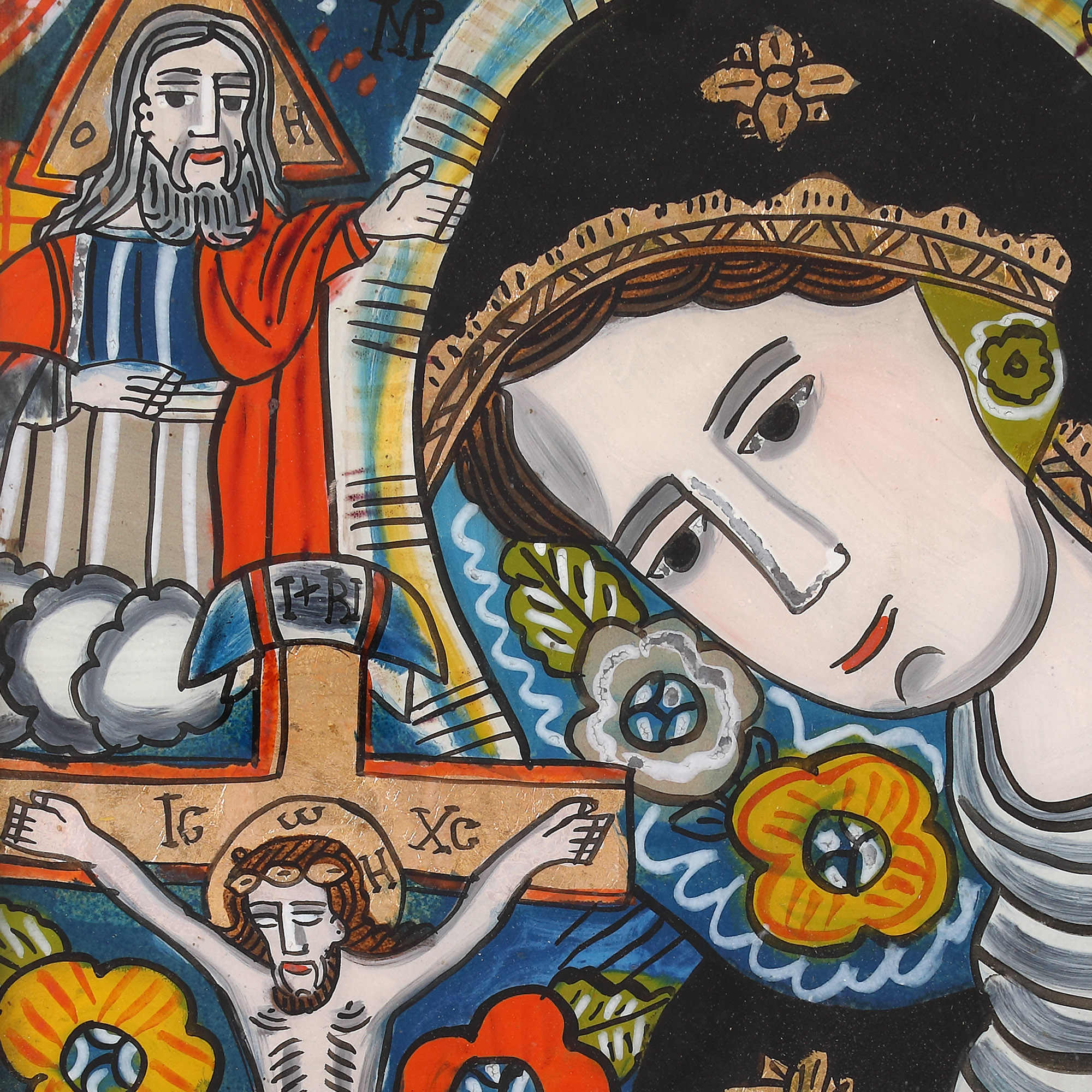 18. Icoană pe glajă, "Maica Domnului Îndurerată", atelier din Șcheii Brașovului, sfârșit sec. XIX