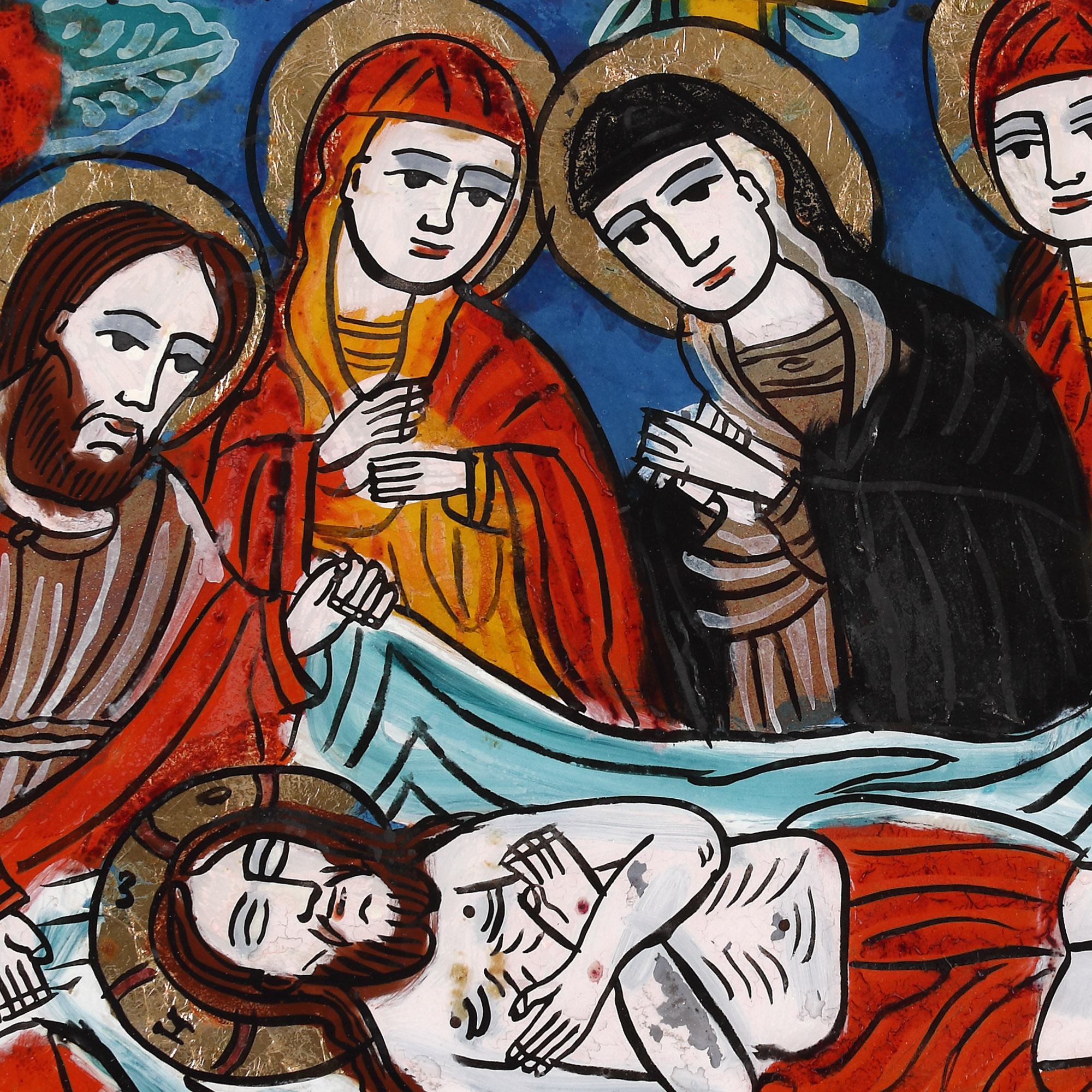 17. Icoană pe glajă, ”Plângerea lui Iisus”, atelier din Șcheii Brașovului, sfârșitul sec. XIX