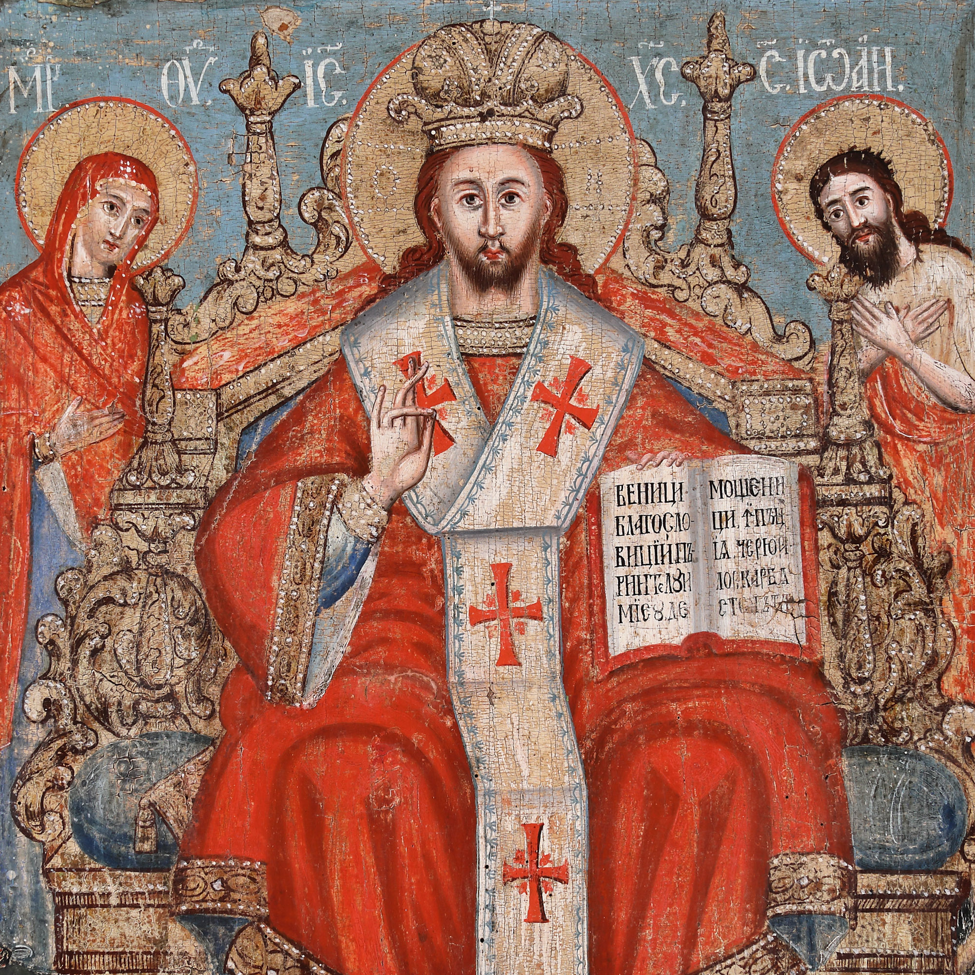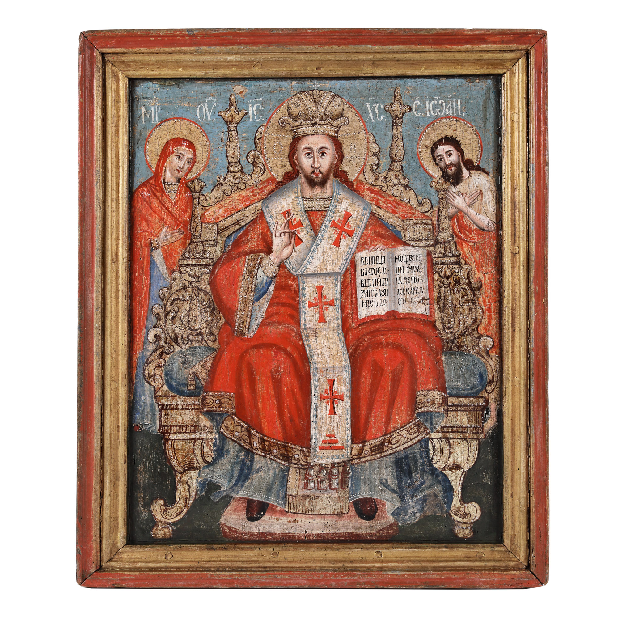 39. Icoană pe lemn, ”Iisus Hristos Împărat și Mare Arhiereu” (Deisis), Țara Românească, școală post-brâncovenească, a doua jumătate a sec. XVIII