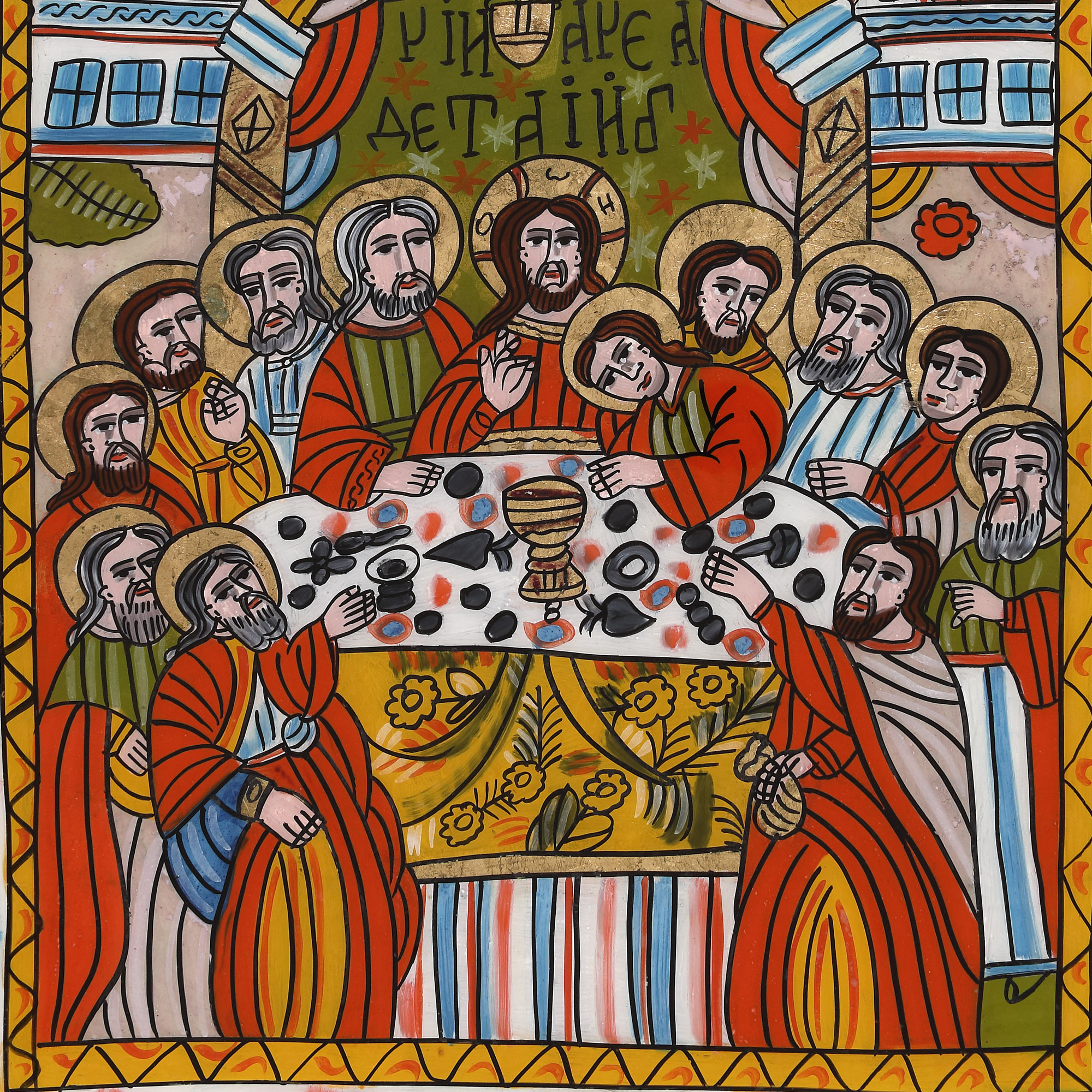 13. Icoană pe sticlă, ”Cina cea de Taină”, atelier din Șcheii Brașovului, a doua jumătate a sec. XIX, de colecție