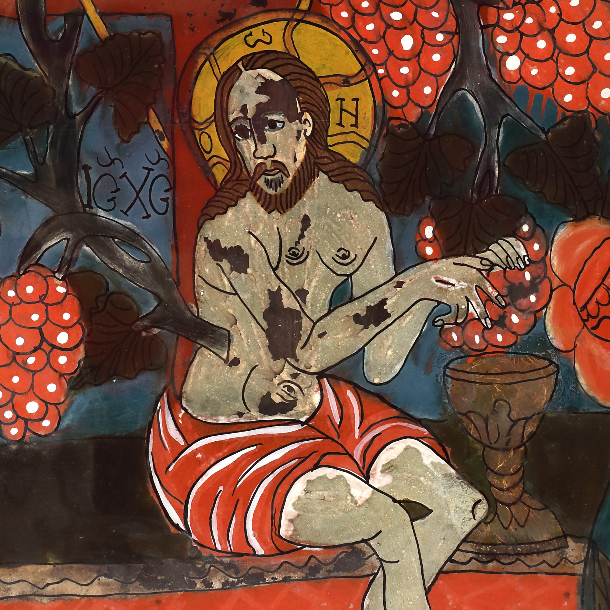 17. Icoană pe glajă, ”Iisus Vița cea adevărată”, atelier din Șcheii Brașovului, a doua jumătate a sec. XIX, piesă rară