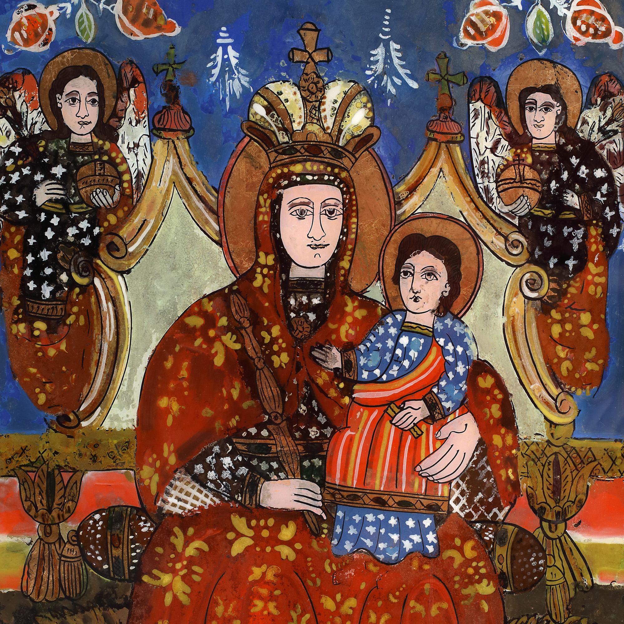 12. Icoană pe glajă, ”Maica Domnului cu Pruncul - Împărăteasa Îngerilor”, atelier din Banat, sfârșitul sec. XIX, raritate, de colecție