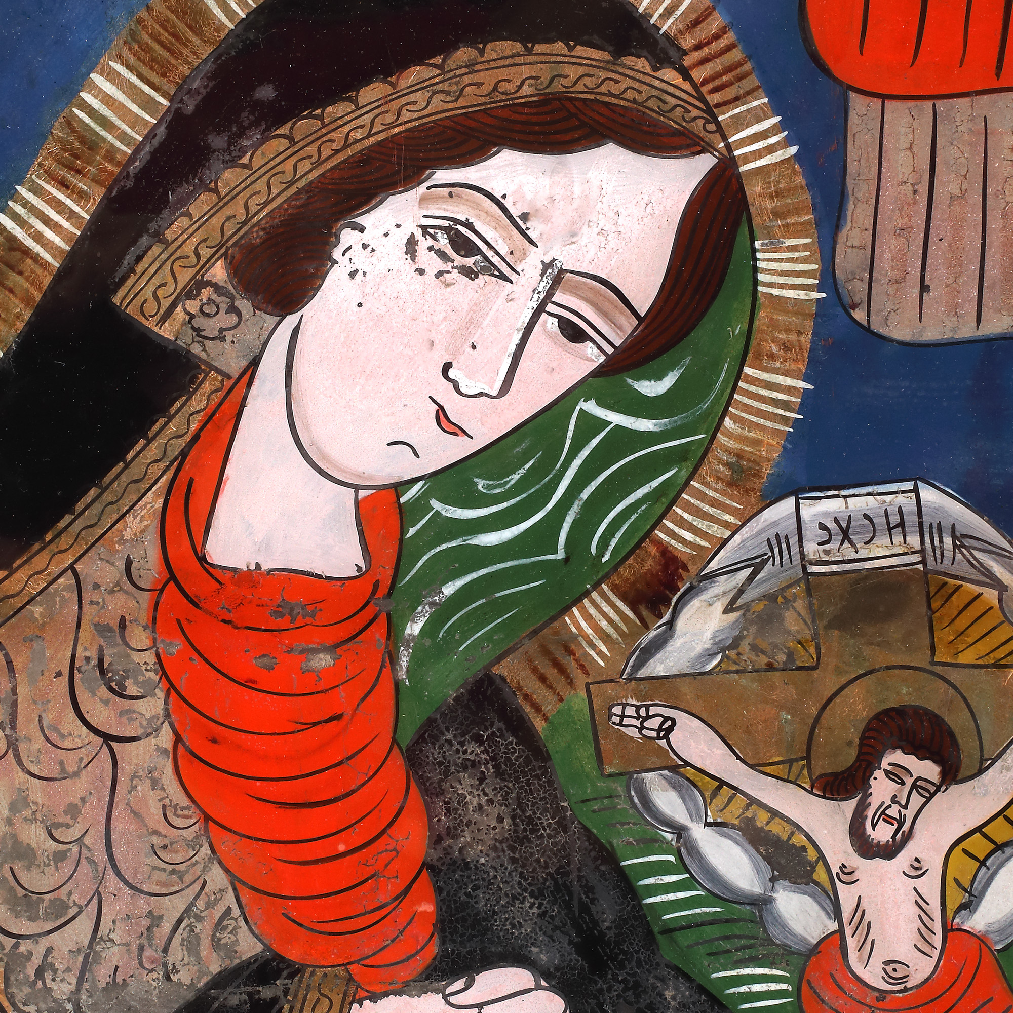 19. Icoană pe glajă, ”Maica Domnului Îndurerată”, atelier din Șcheii Brașovului, a doua jumătate a sec. XIX