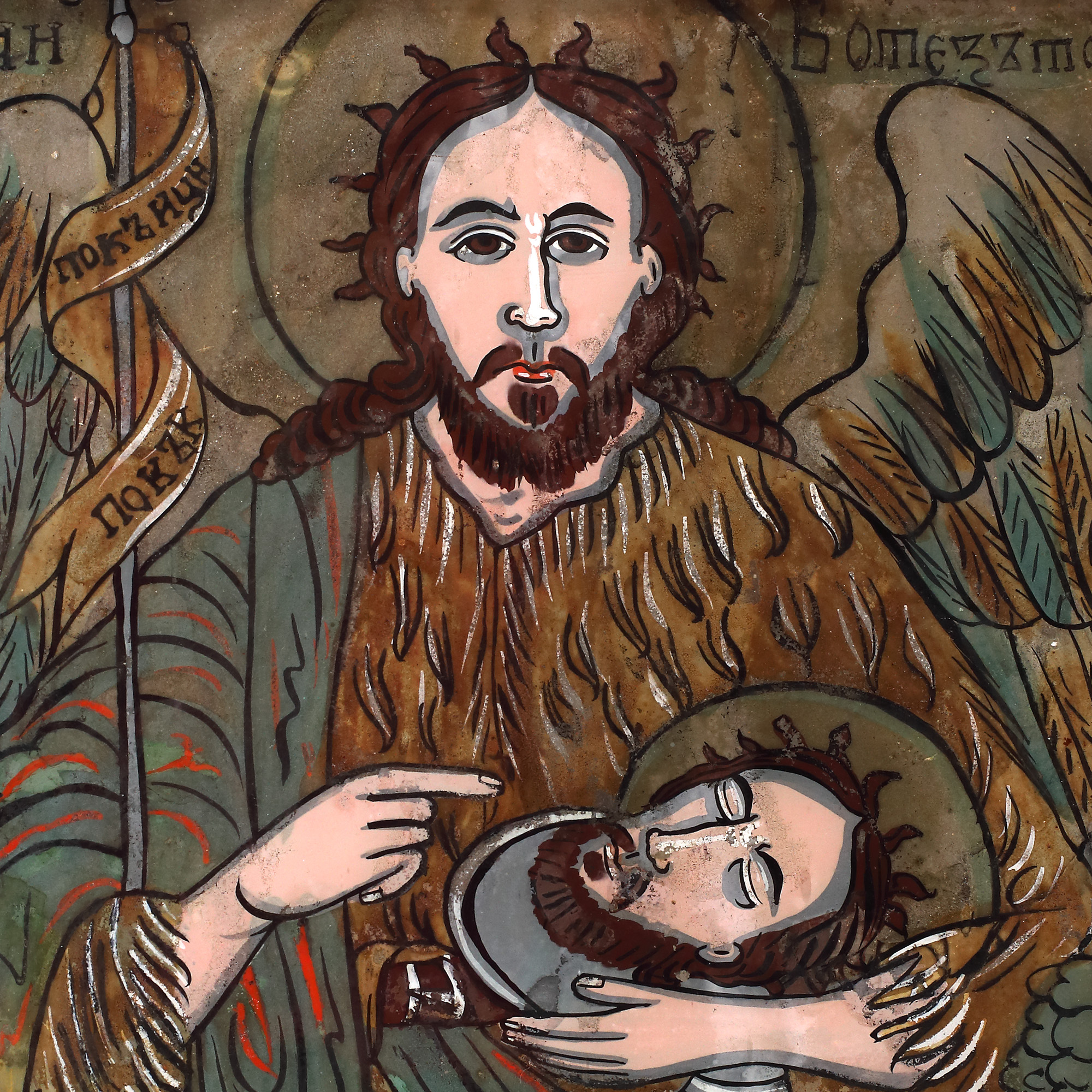 27. Icoană pe glajă, ”Sfântul Ioan Botezătorul”, atelierul familiei Oancea din Vale, probabil Nicolae Oancea, Mărginimea Sibiului, cca. 1840