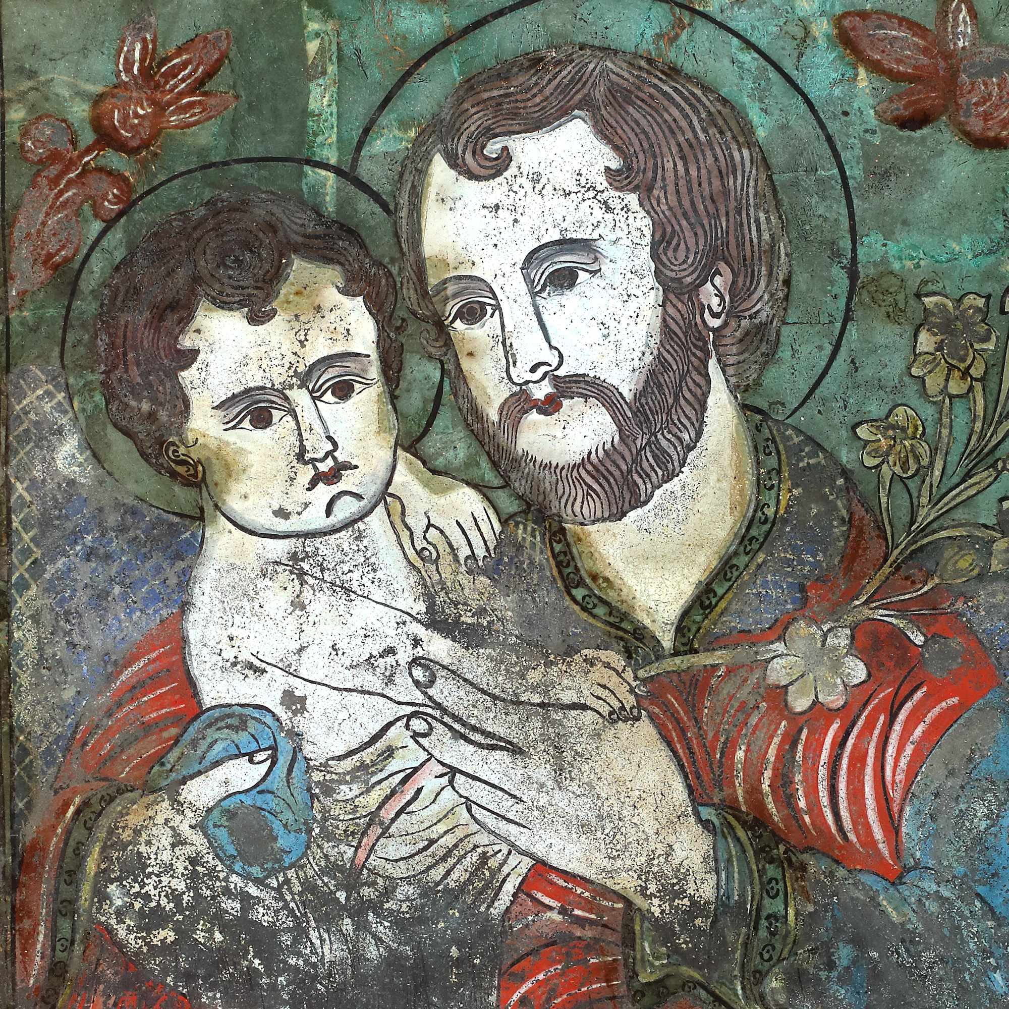 30. Icoană pe glajă, ”Sfântul și Dreptul Iosif cu Pruncul”, atelier transilvănean, 1874, piesă rară