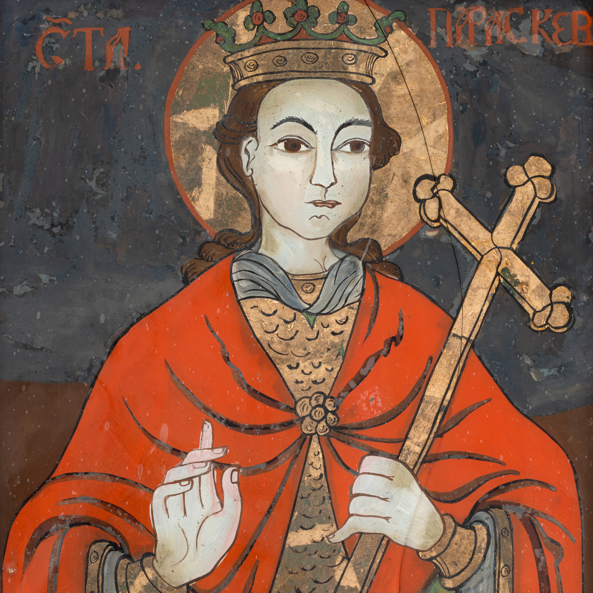 29. Icoană pe glajă, ”Sfânta Paraschiva”, atribuit zugrav Ioan Tămaș, Făgăraș, cca. 1810-1820, piesă foarte rară, de colecție