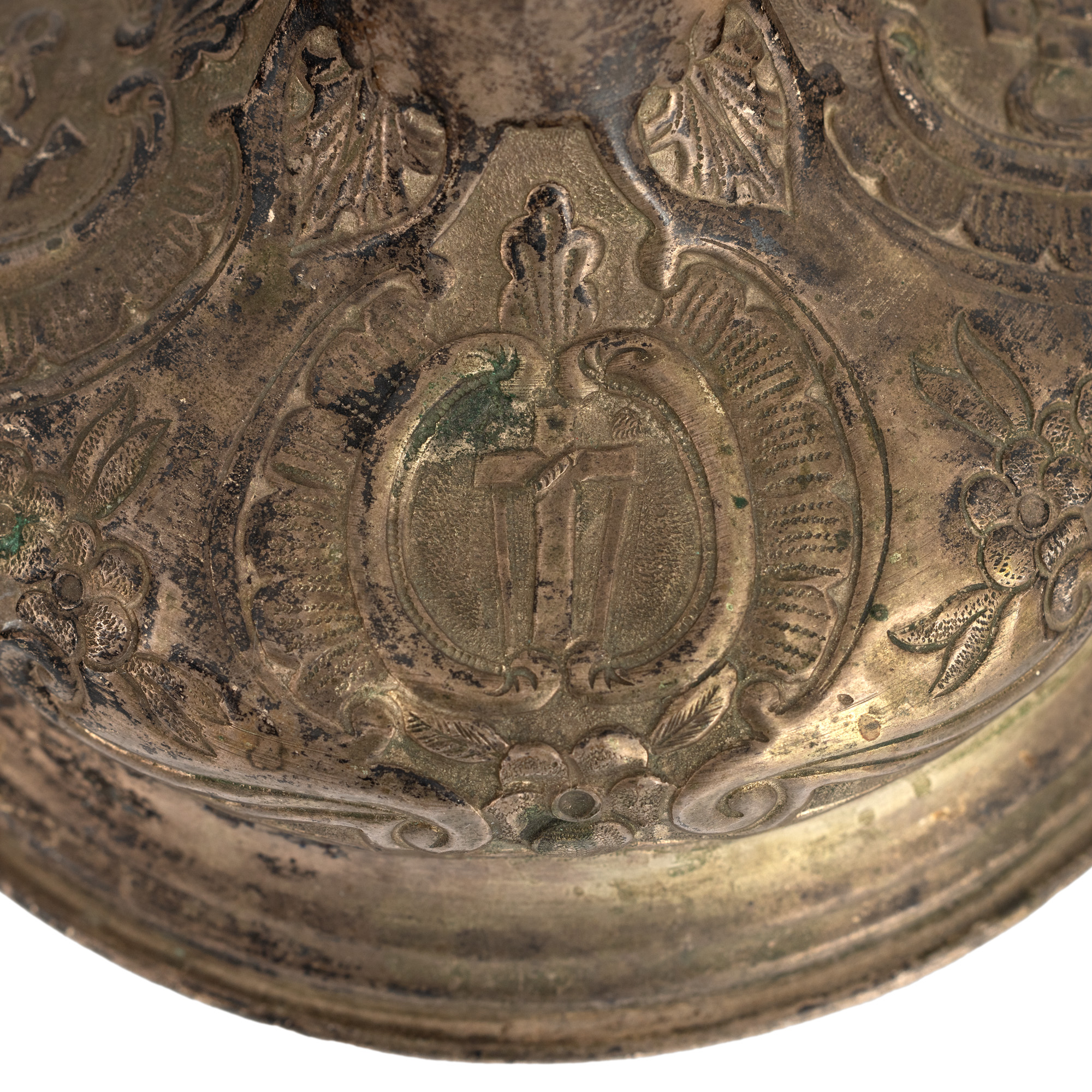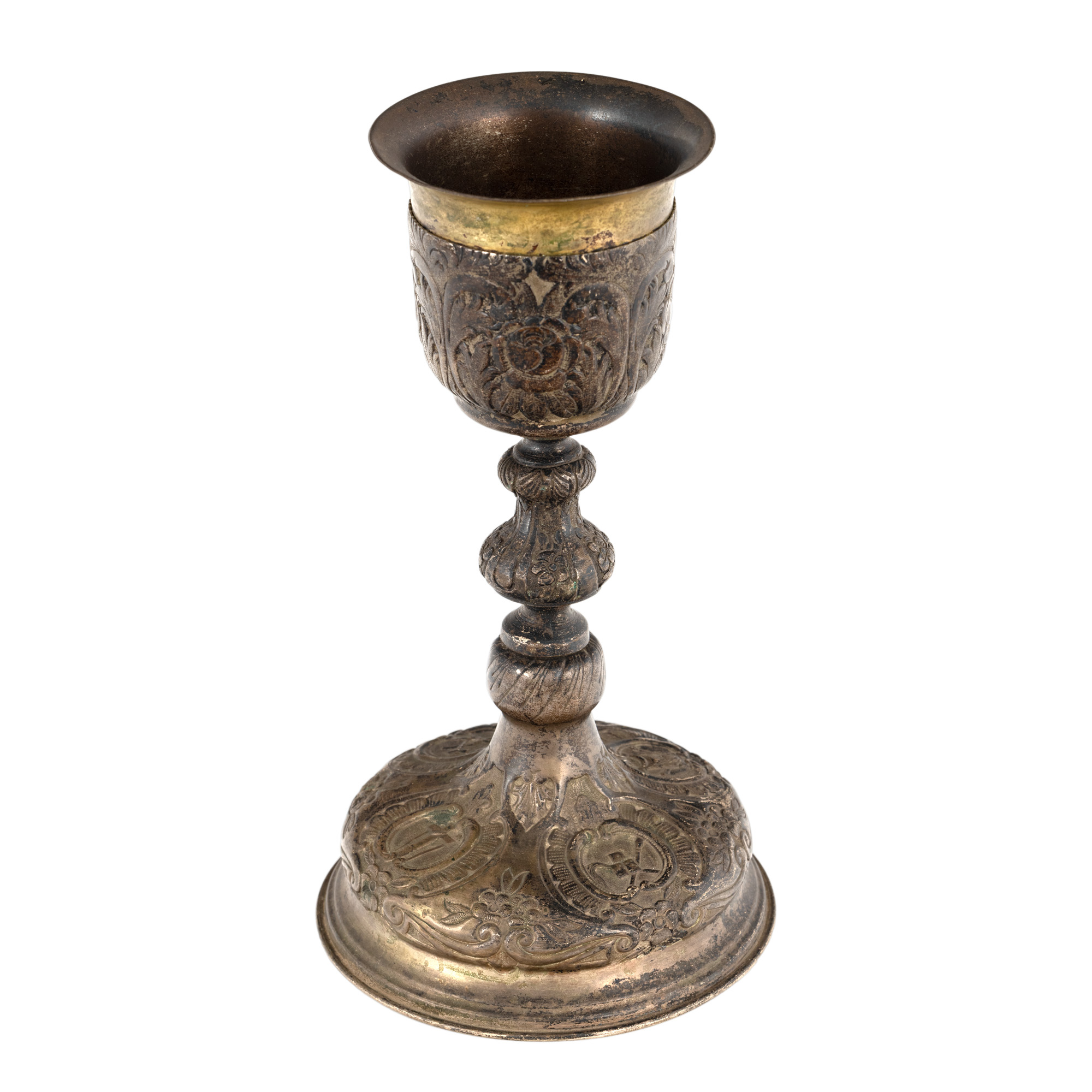 13. Pocal din argint, decorat cu floare de dovleac și semnele patimilor, probabil Sibiu, 1800-1830, piesă rară, de colecție