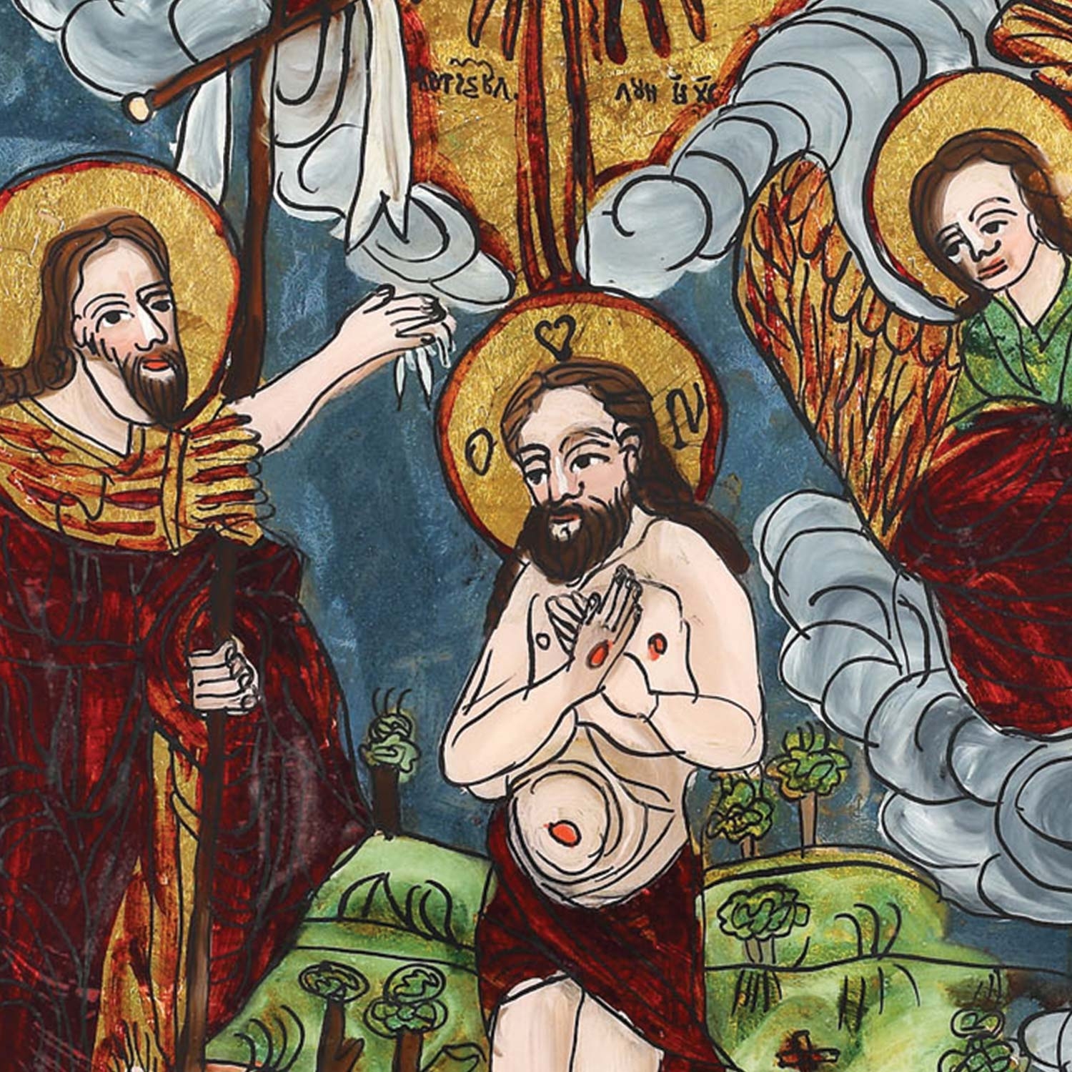 16. Icoană pe glajă, ”Botezul Domnului”, ramă pictată, atribuit zugrav Elena sau Elisabeta Morar, Săliștea, Sibiu, ultimele decenii ale sec. XIX