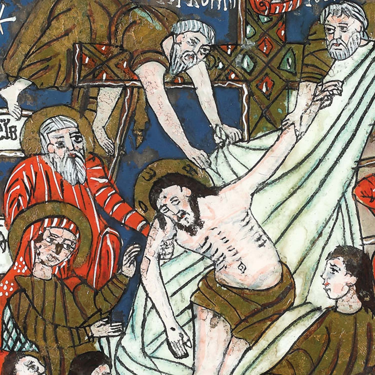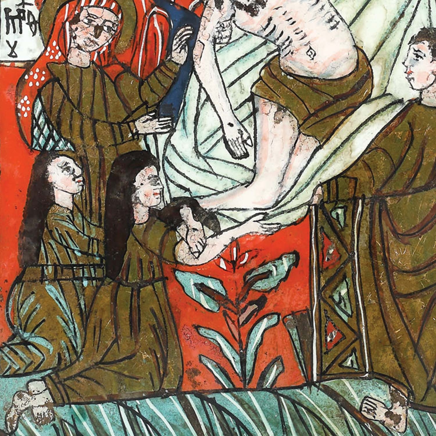 15. Icoană pe glajă, ”Coborârea de pe Cruce”, ramă vopsită, atribuit zugrav Popa Matei din Vale, primele decenii ale sec. XIX, piesă de colecție