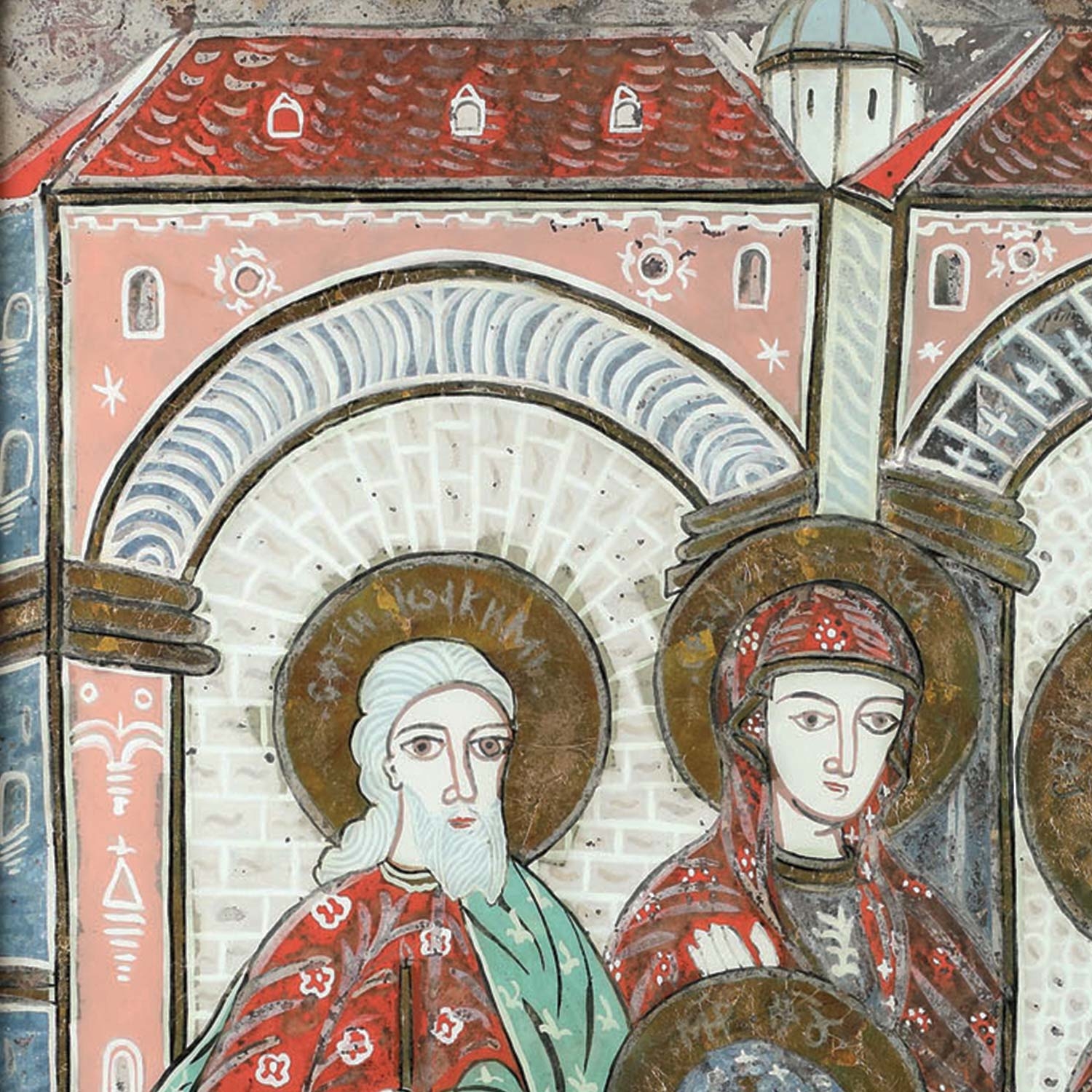 11C. Icoană pe glajă, ”Prezentarea la Templu a Fecioarei Maria”, atribuit zugrav Ioniță din Brașov, cca. 1770-1780, piesă rarisimă, de colecție