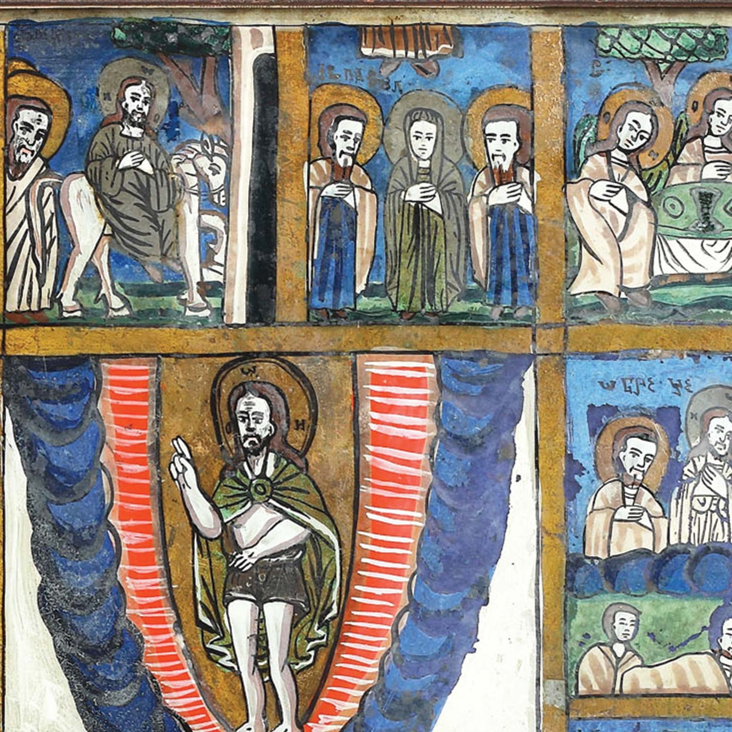 13. Icoană prăznicar pe glajă, "Învierea Domnului cu 12 scene de praznic", ramă băițuită, cu șforț, atribuit zugrav Simion Poienaru, Laz, jumătatea sec. XIX
