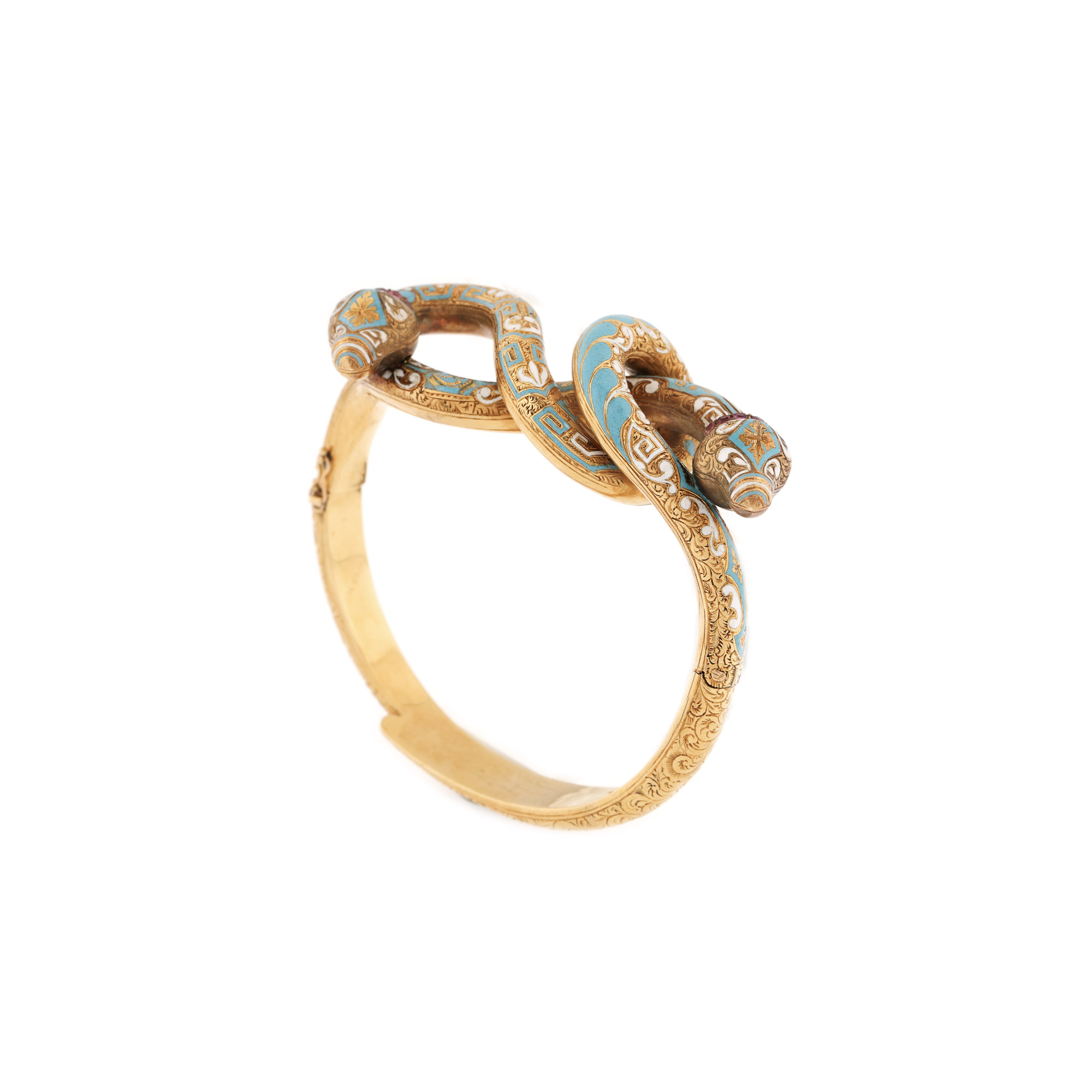 27. Brățară din aur, decorată cu email și rubine, cca. 1900