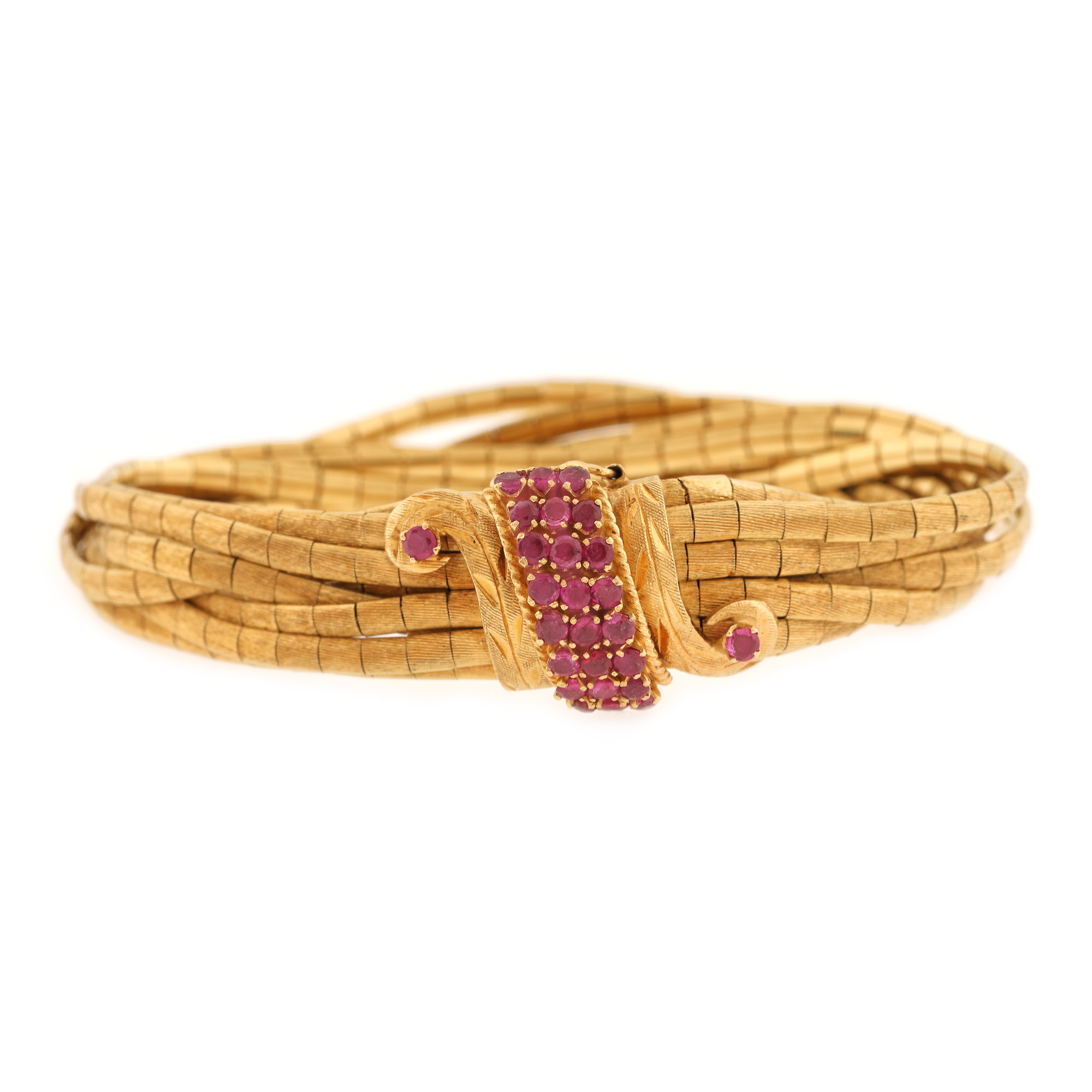 29. Superbă brățară din aur satinat, decorată cu rubine [1965]