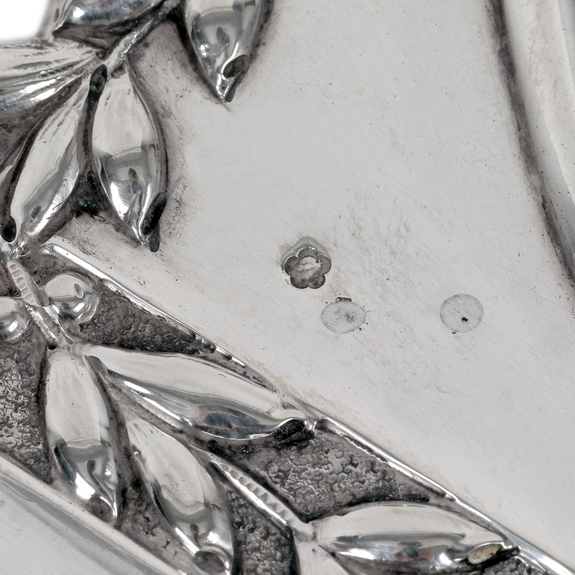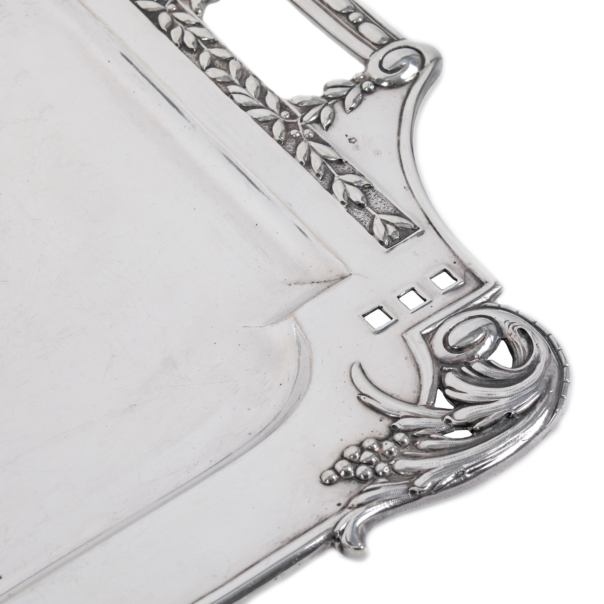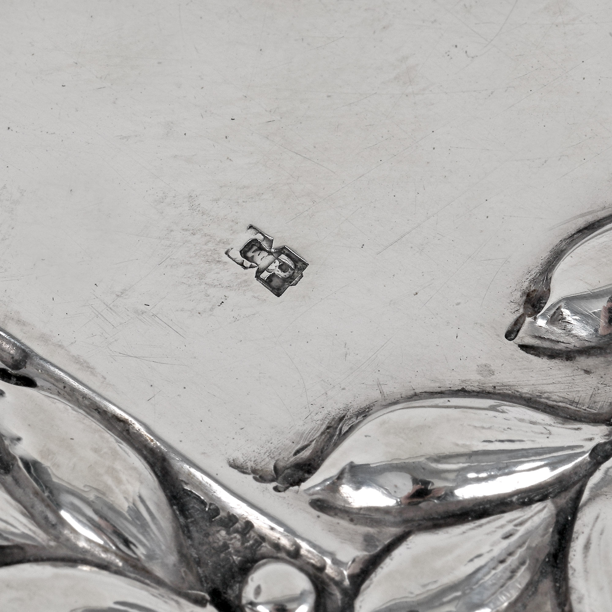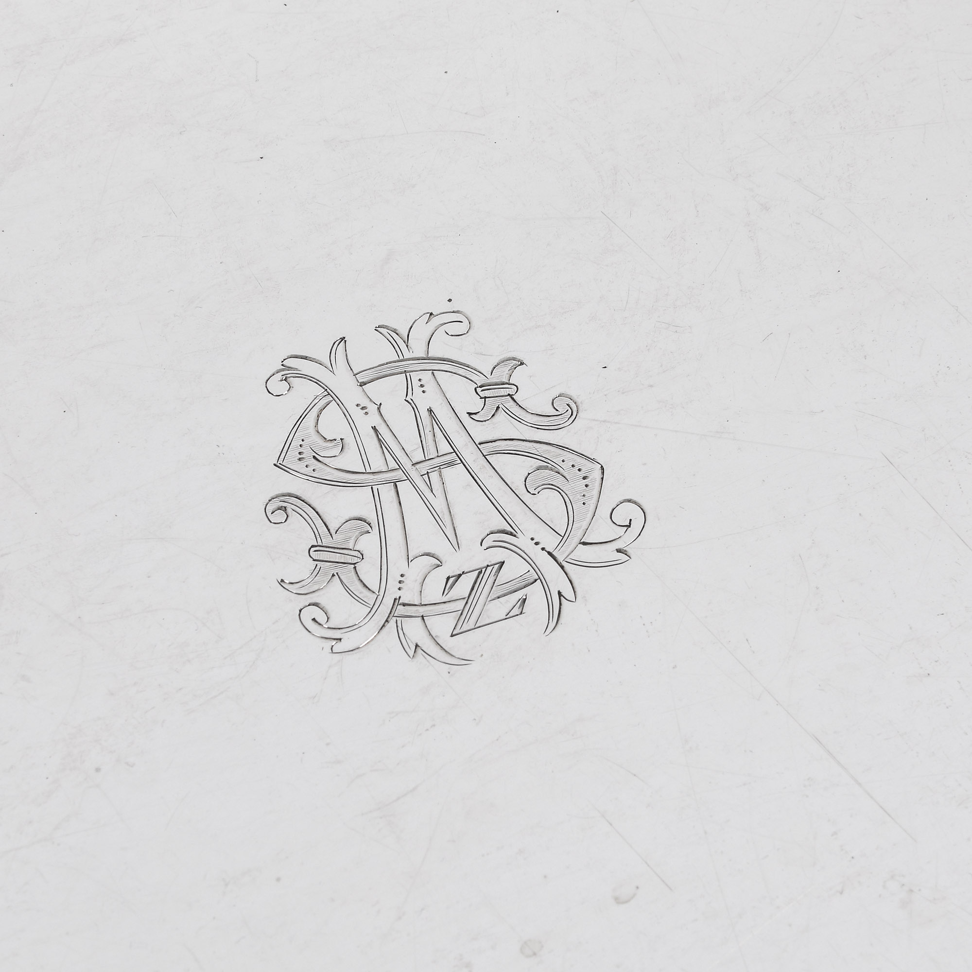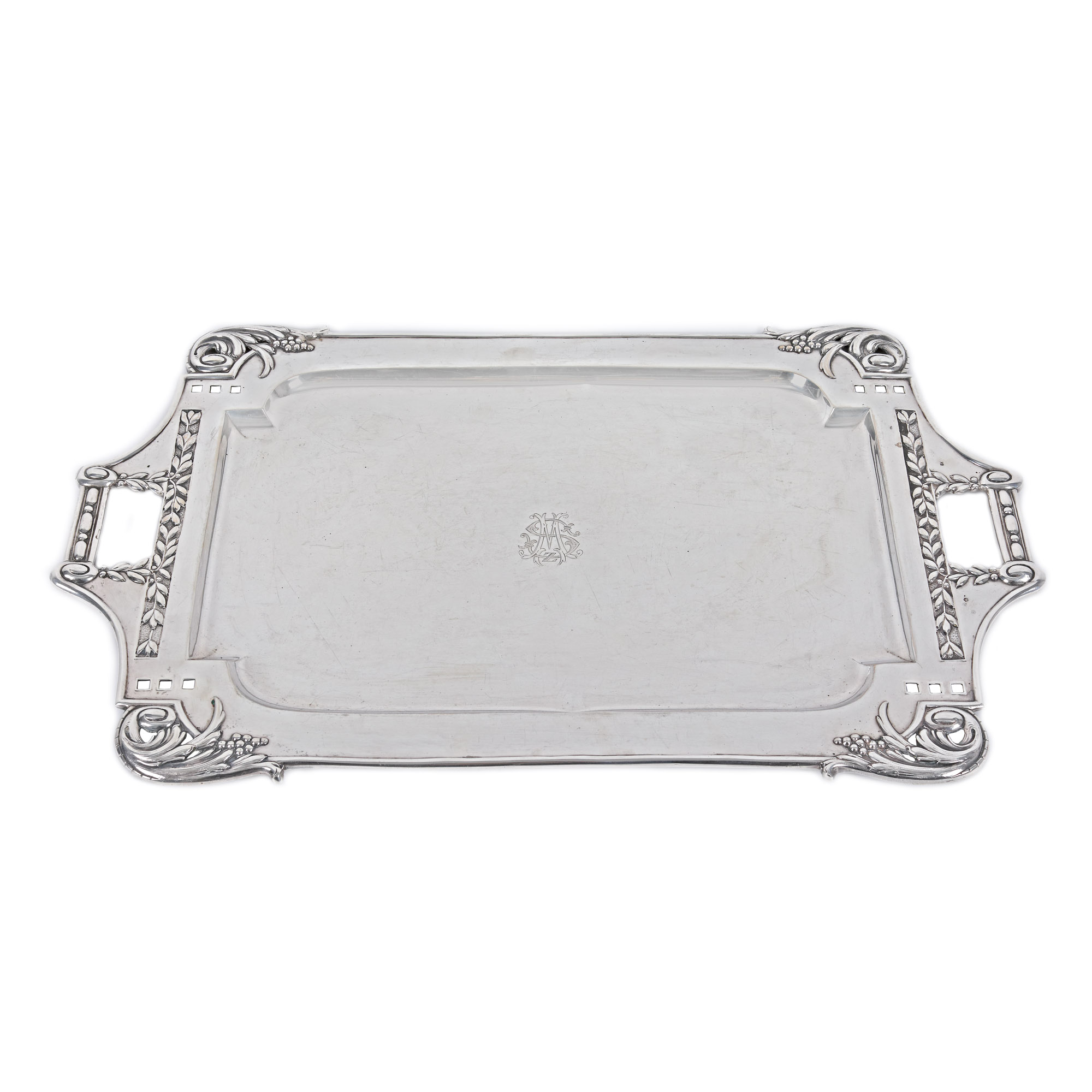 37. Tavă din argint, monogramată central, cu motive decorative vegetale, sfârșitul sec. XIX