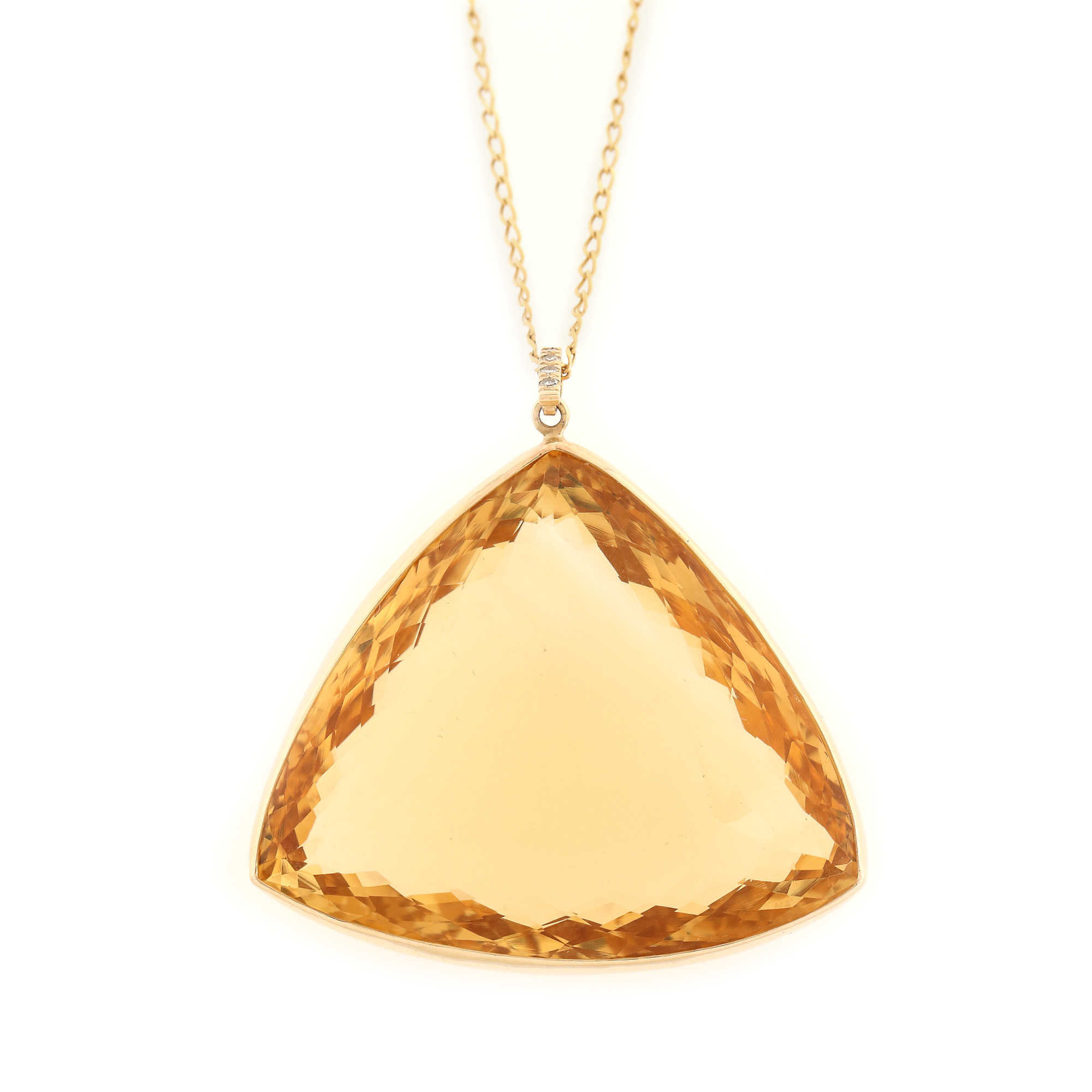 2. Lanț cu pandantiv din aur, decorat cu citrin trillion cut și diamante