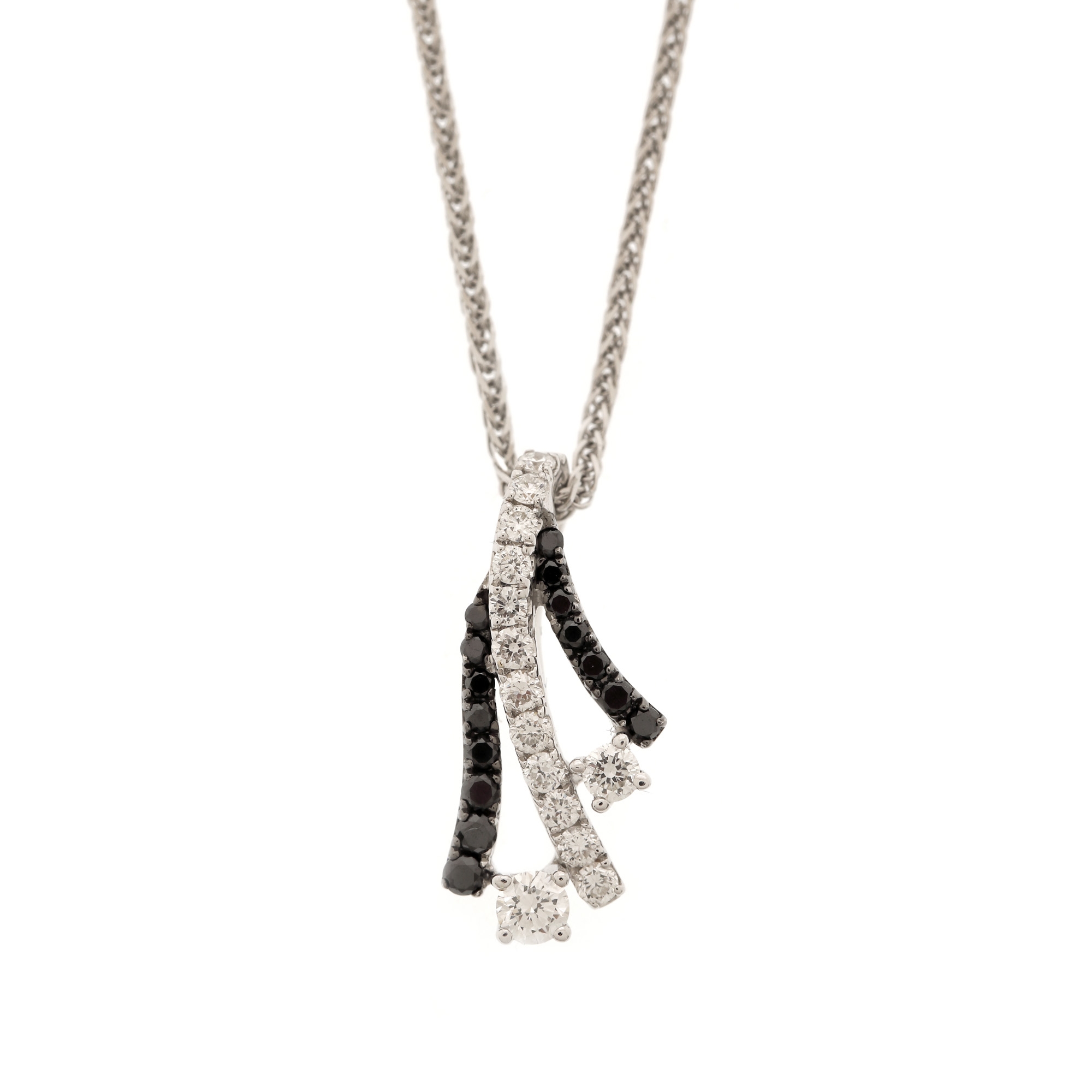 34. Lanț cu pandantiv din aur alb, ornat cu diamante albe și negre