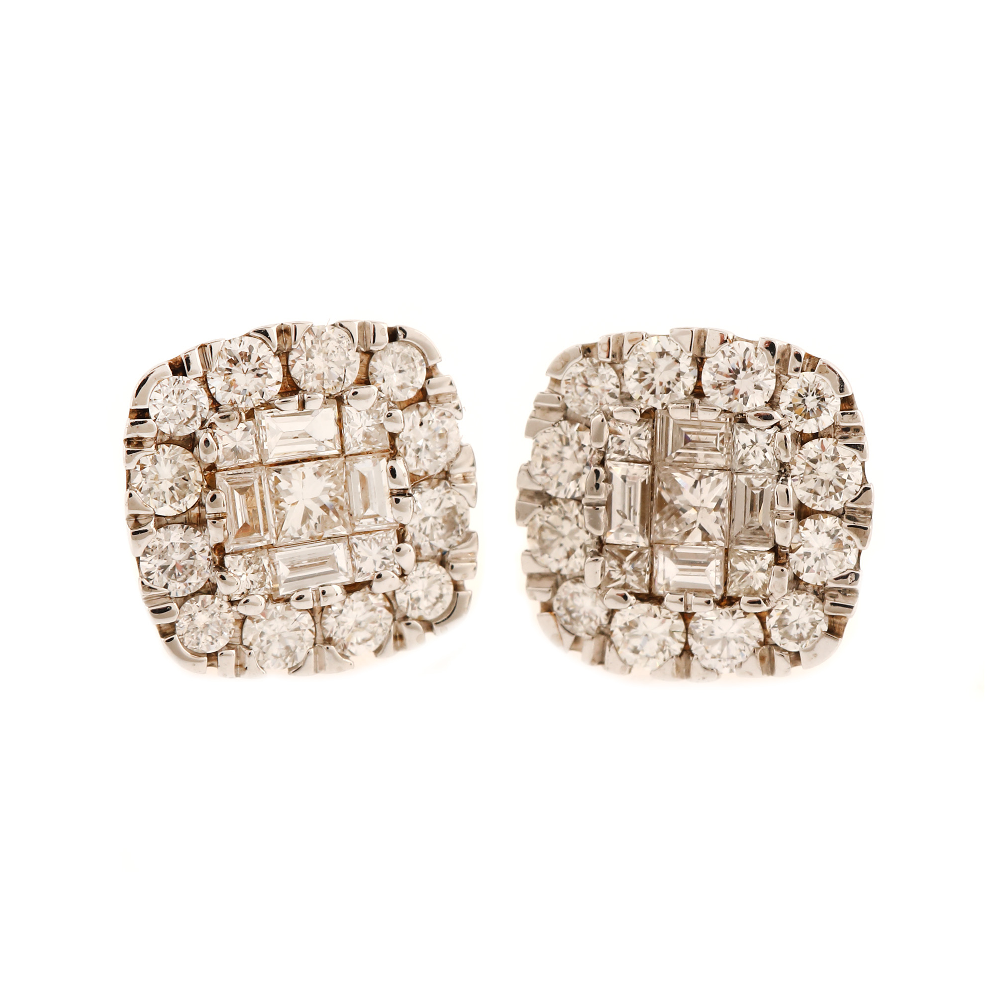 12. Pereche de cercei din aur alb, decorată cu diamate
