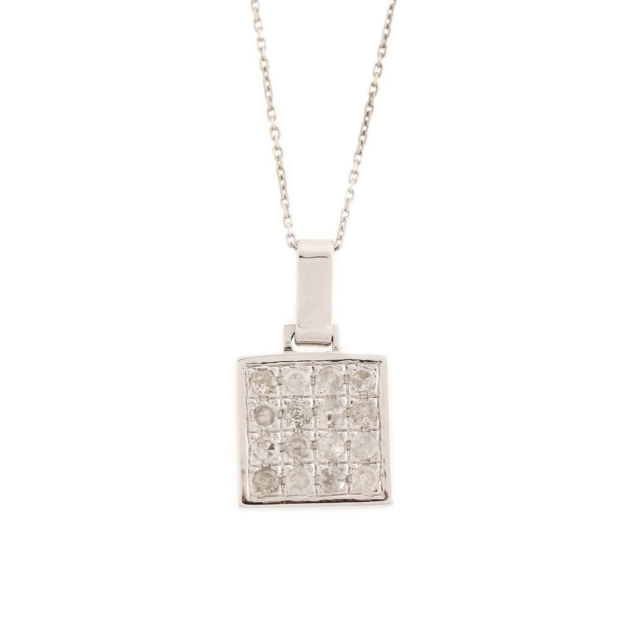 15. Lanț cu pandantiv din aur alb, decorat cu diamante