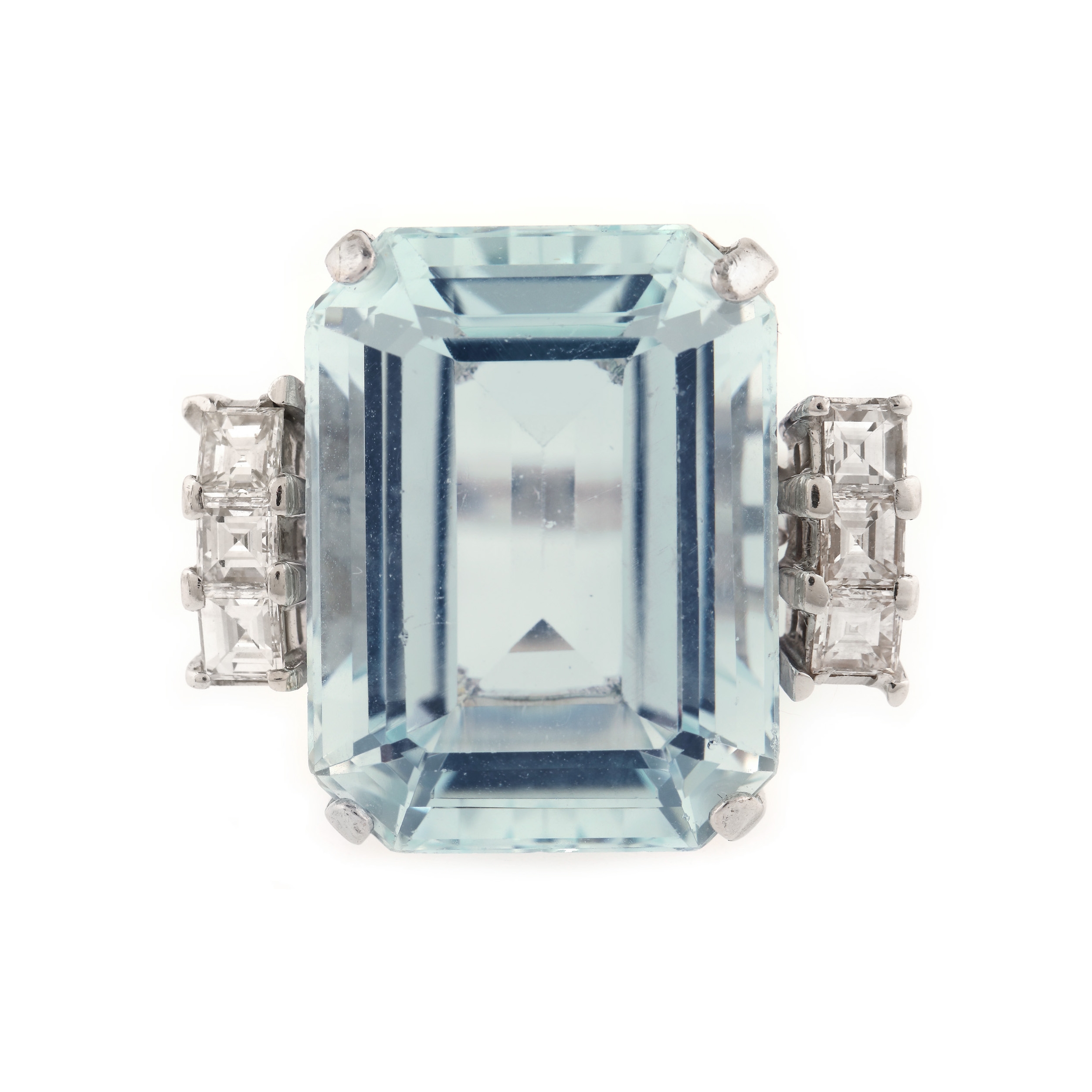 21. Inel din aur alb, decorat cu acvamarin și diamante