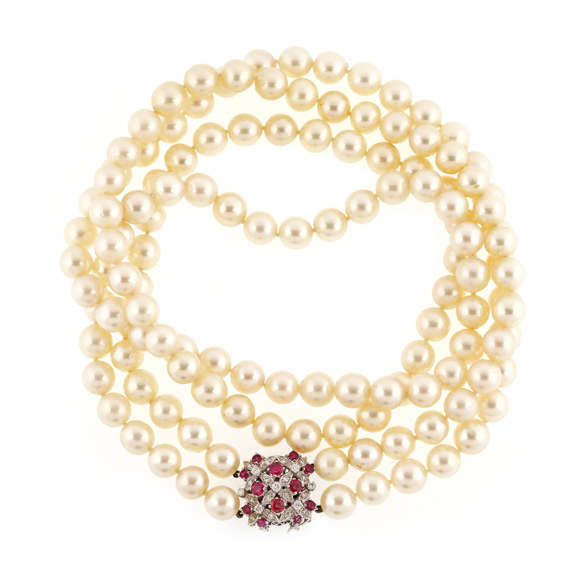 17. Colier din perle, cu închizătoare din aur alb, ornată cu rubine și diamante [Cca. 1960]