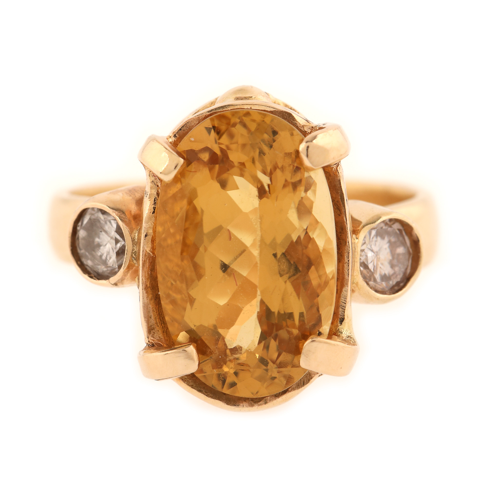 1. Inel din aur, decorat cu citrin anturat de diamante