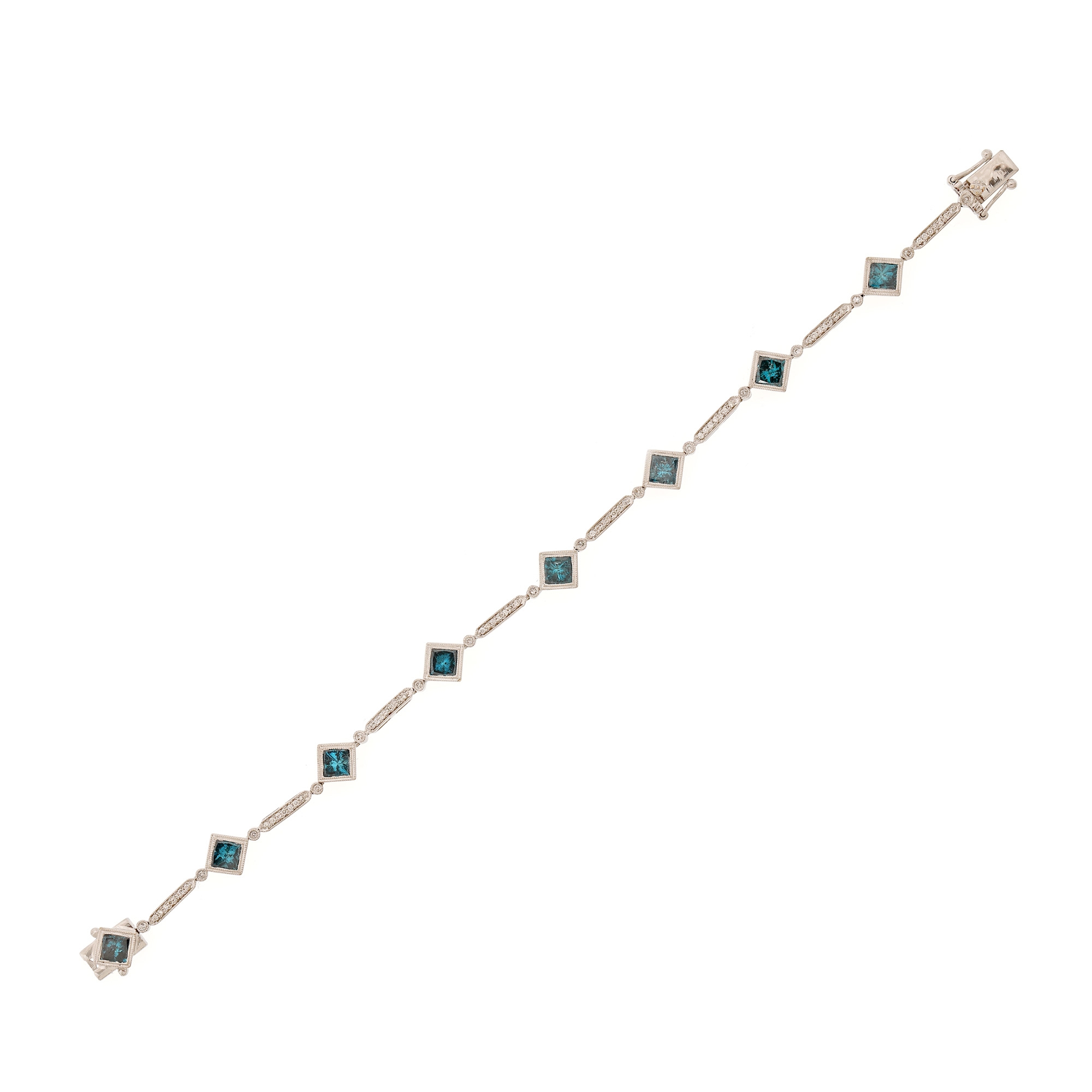 32. Brățară din aur alb, decorată cu diamante albastre și albe