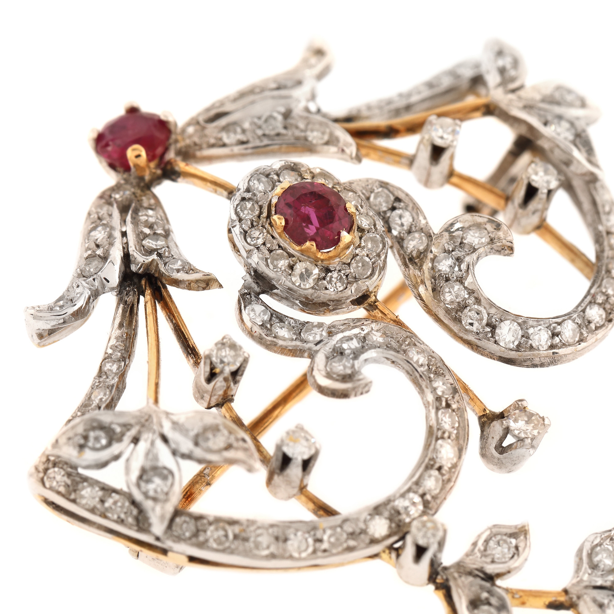 24. Broșă din aur bicolor, decorată cu rubine și diamante