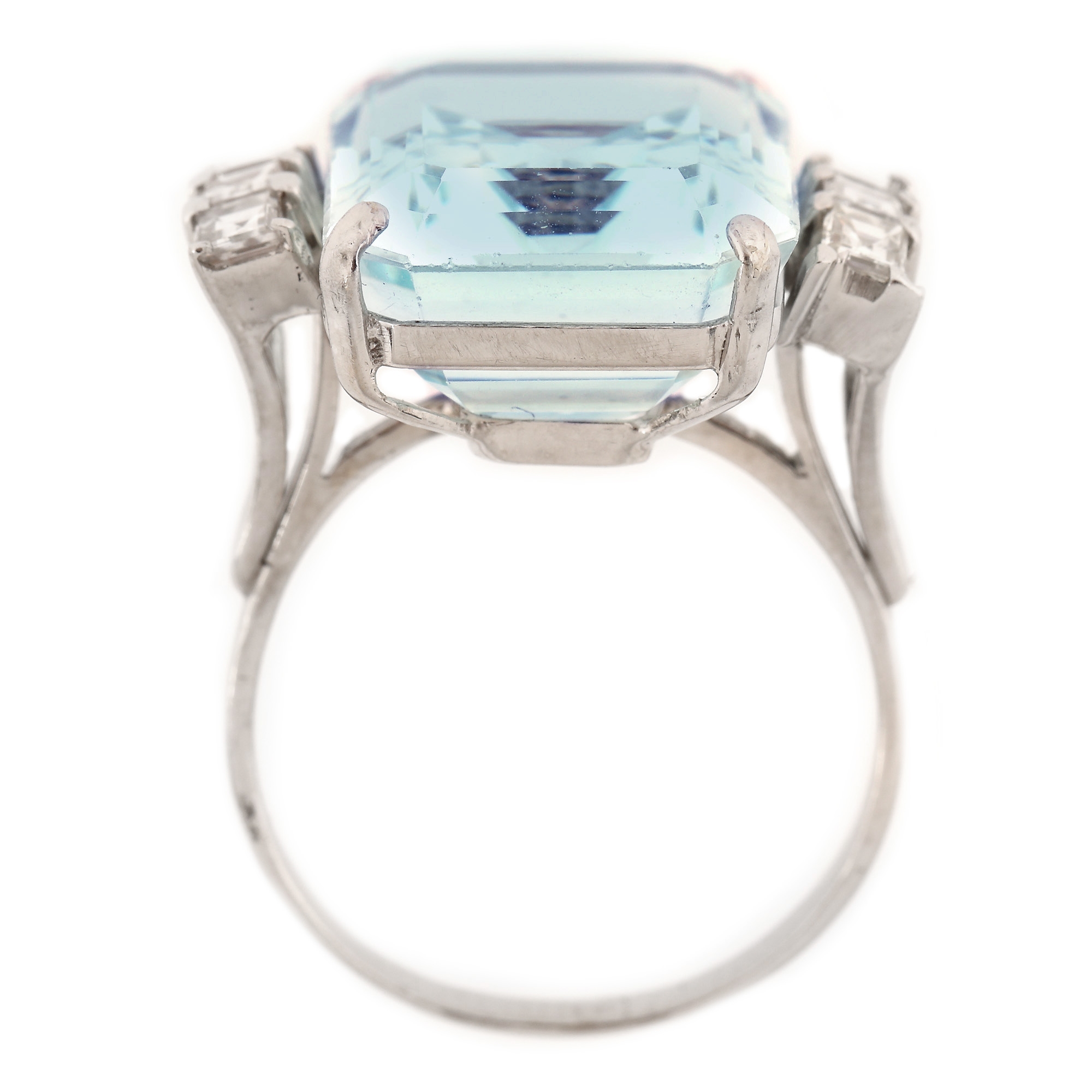 21. Inel din aur alb, decorat cu acvamarin și diamante